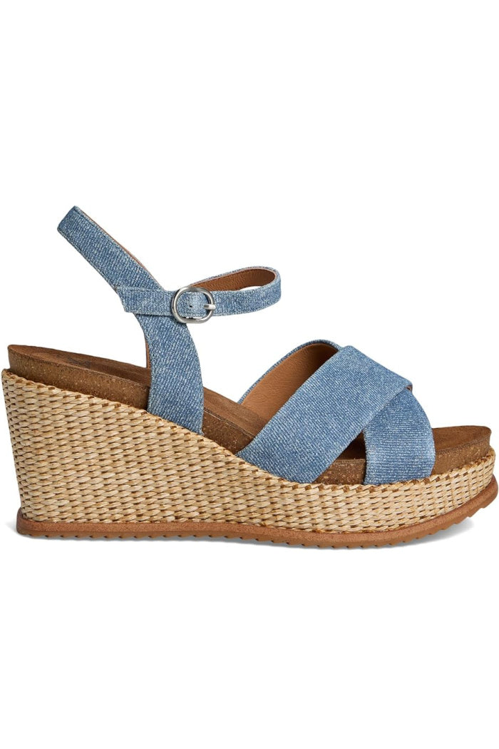 The Sofft® Diana sandal features a two-piece leather upper and cross-strap vamp design. The adjustable buckle ensures a secure fit, while the padded cork suede footbed provides exceptional cushioning for all-day wear. The basket-wrapped heel adds a touch of rustic charm.