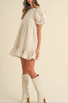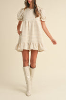The babydoll silhouette offers a relaxed yet flattering fit, making it an easy choice for casual outings, brunch dates, or even a night out. Pair it with ankle boots for a chic boho look or strappy heels for a dressed-up vibe.