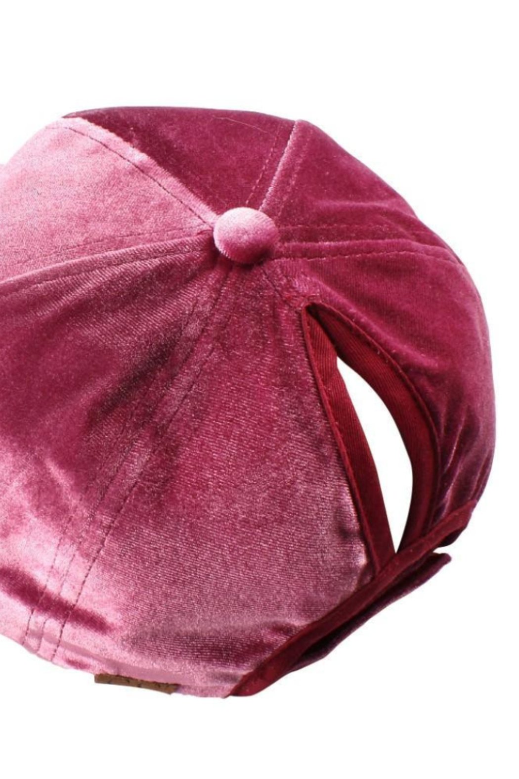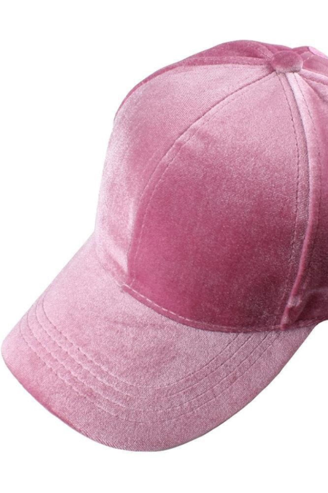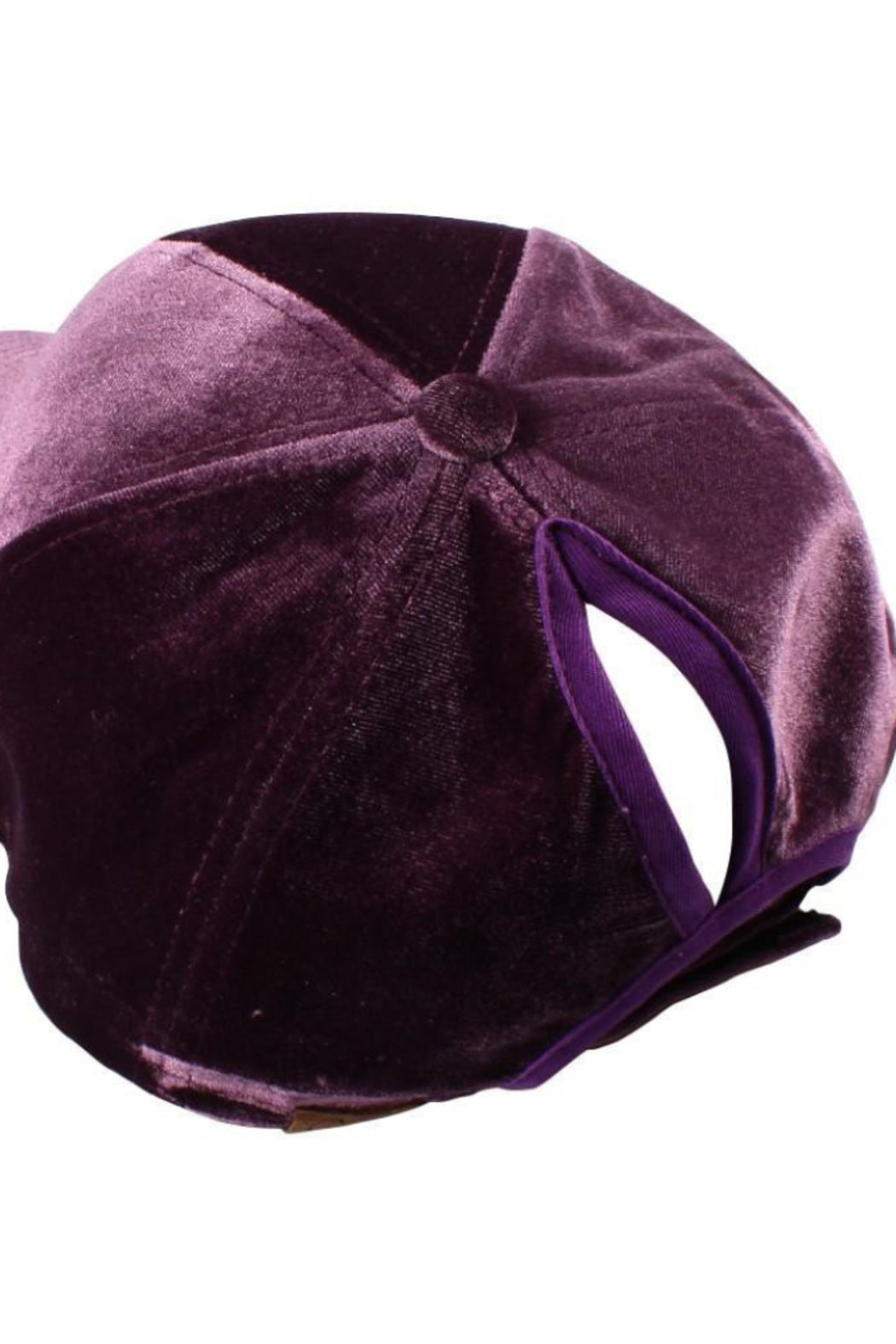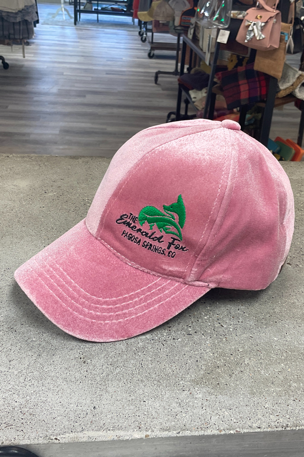 Solid Color Velvet Ponytail Baseball Cap. 100% Polyester. This hat comes with our very own The Emerald Fox Boutique logo.