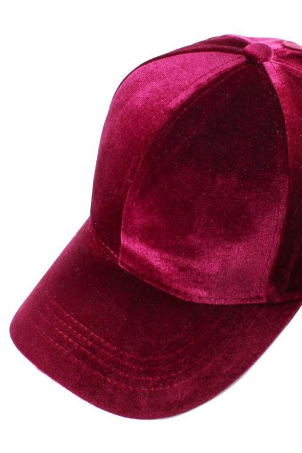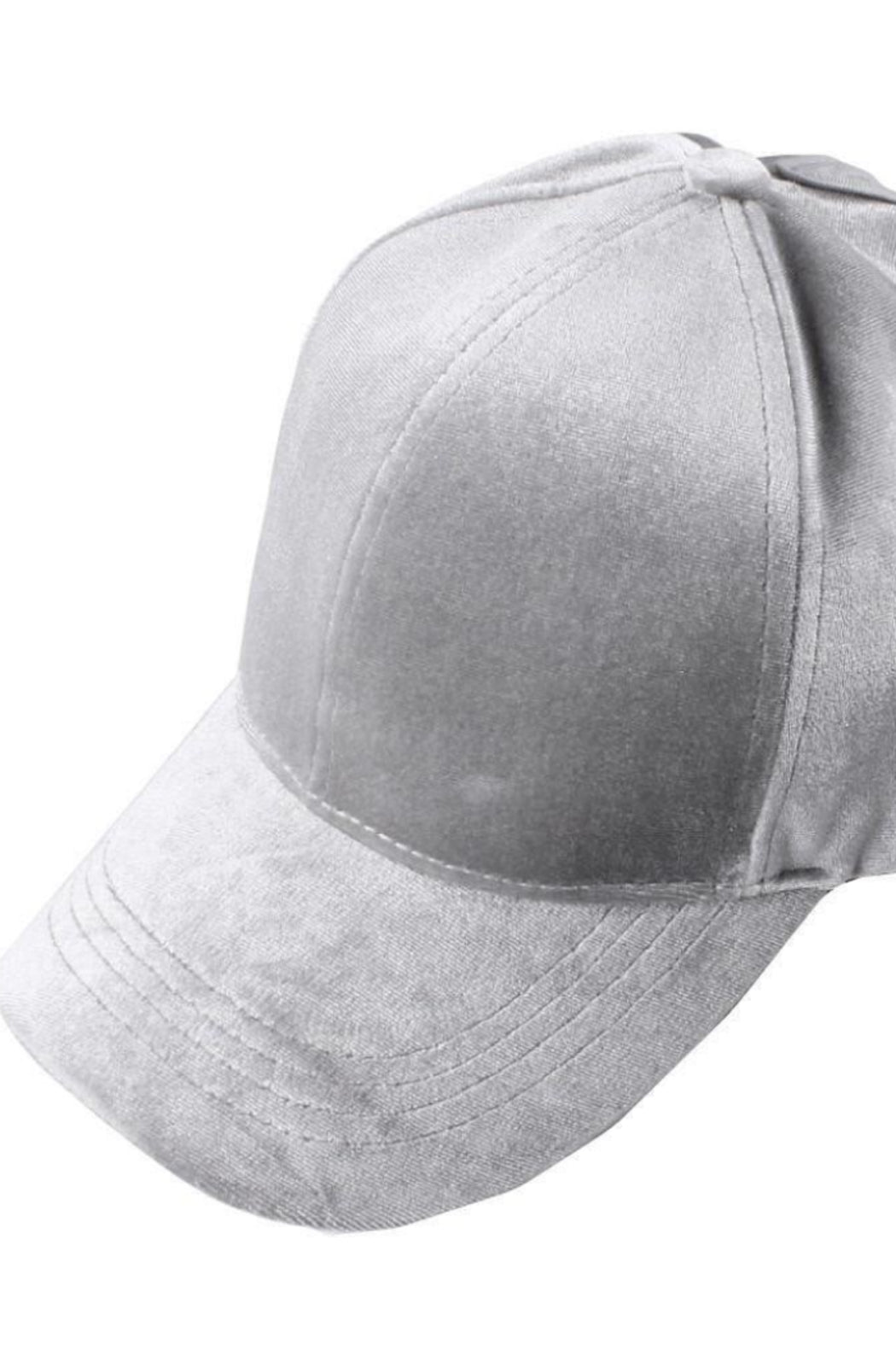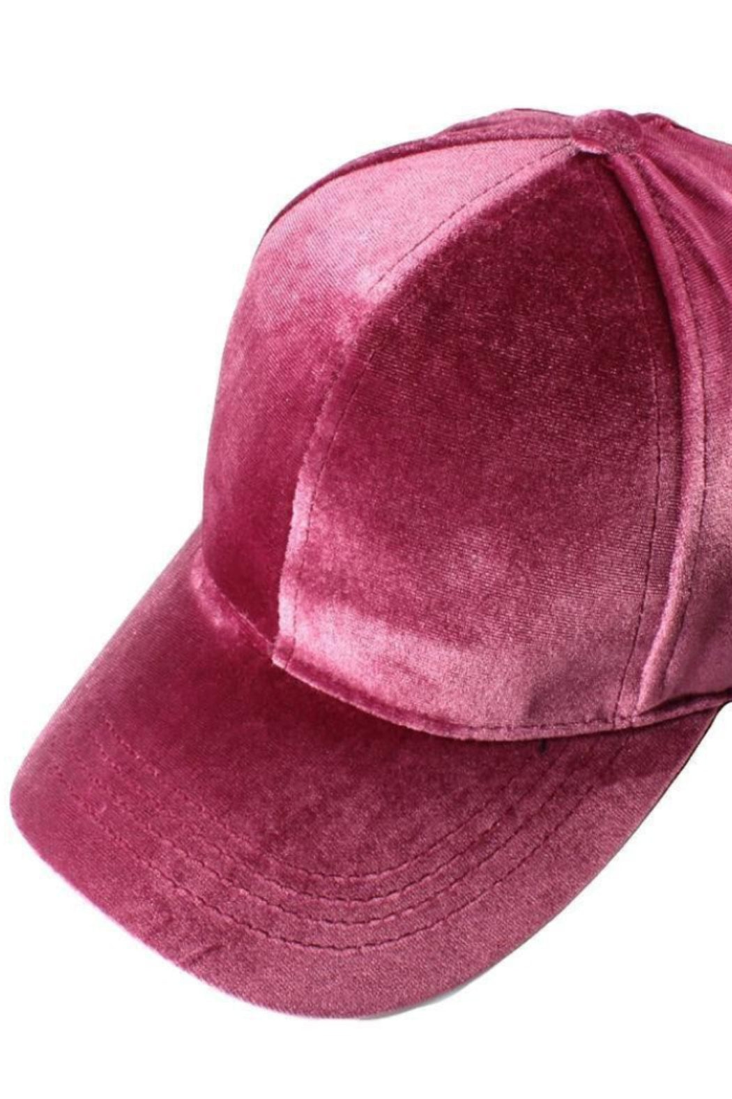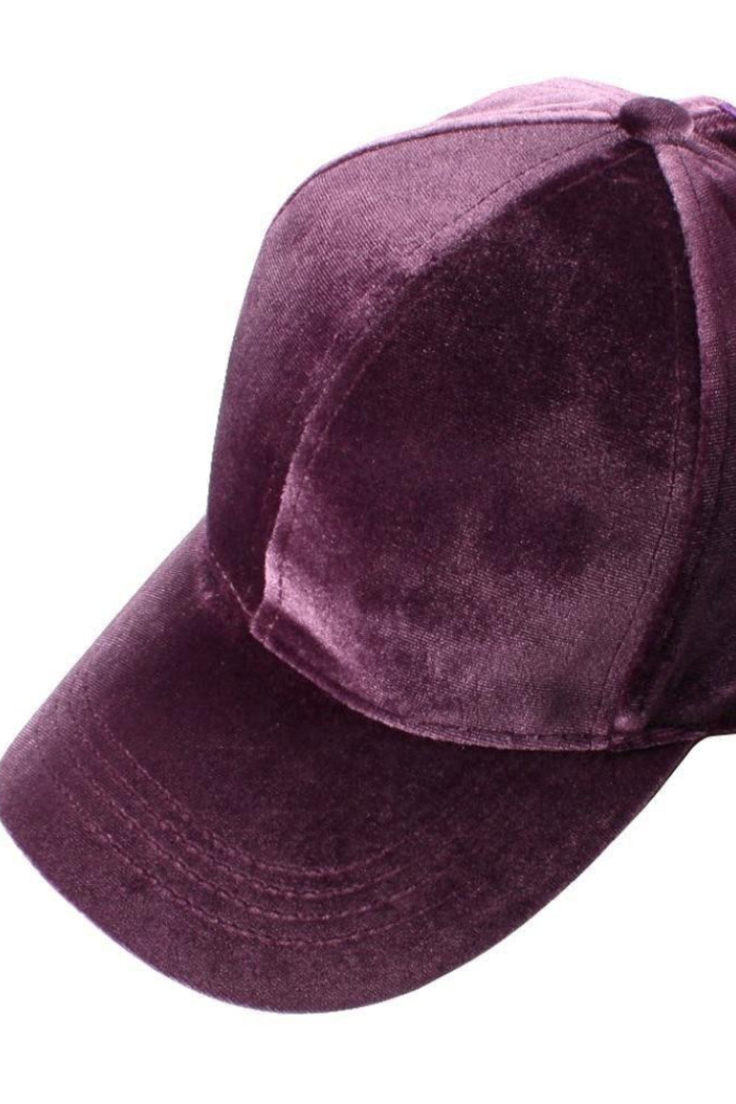 Solid Color Velvet Ponytail Baseball Cap. 100% Polyester. This hat comes with our very own The Emerald Fox Boutique logo.