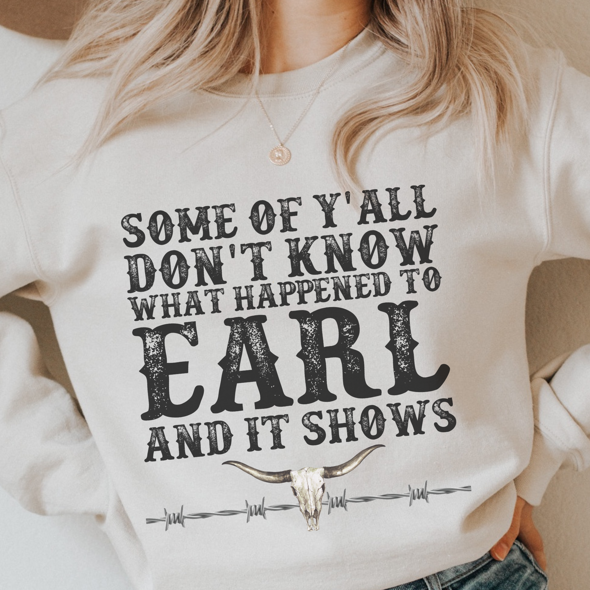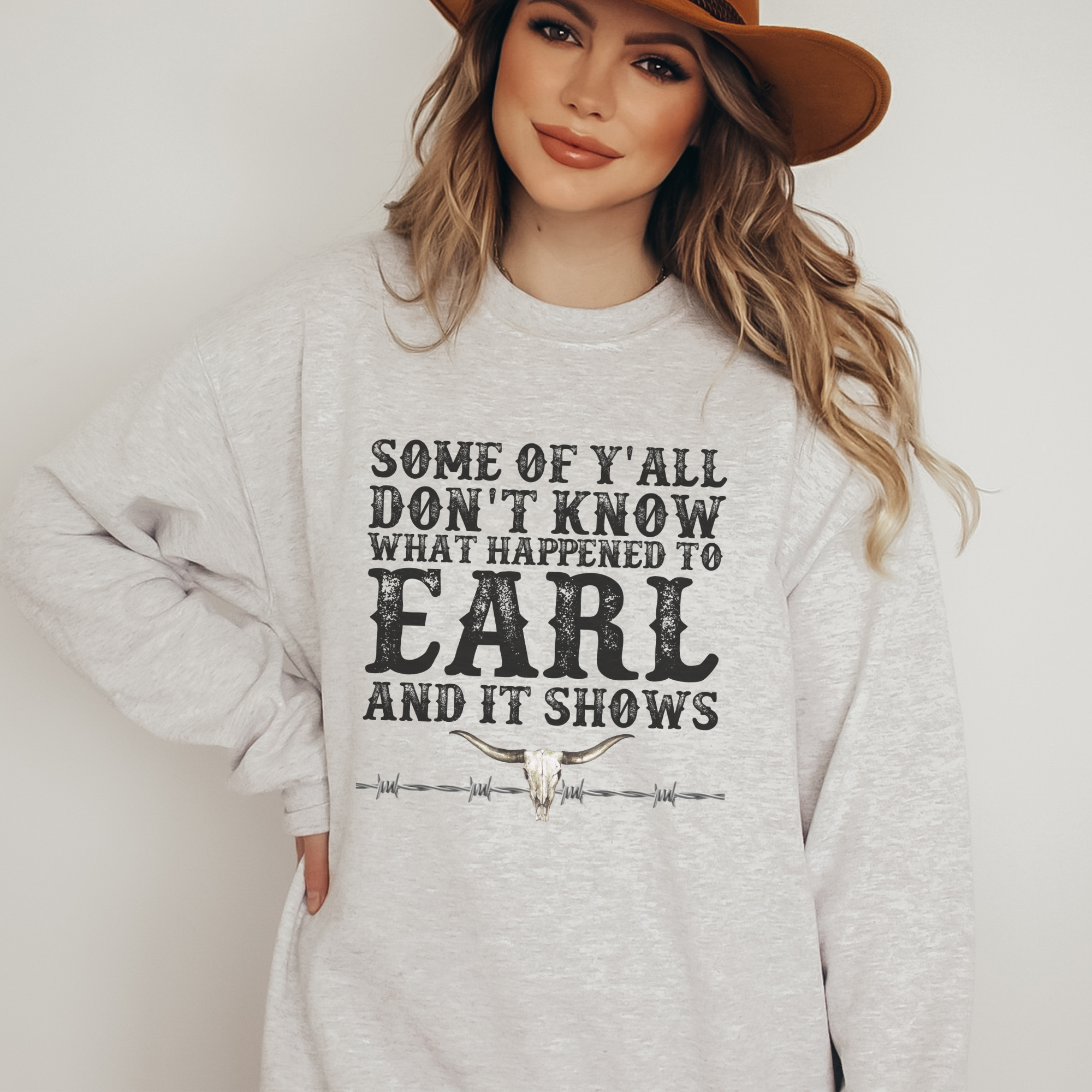 Some of Y'all Don't Know What Happened to Earl Crewneck Sweatshirt - funny western design for everyday wear! Pre-Shrunk