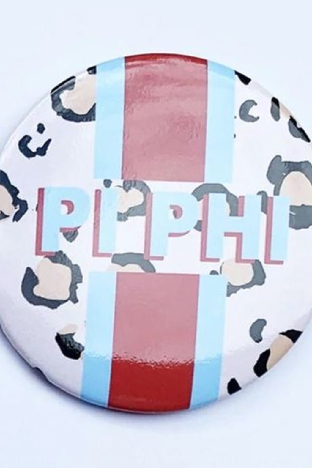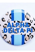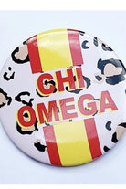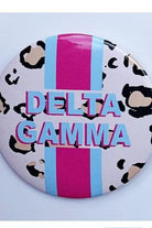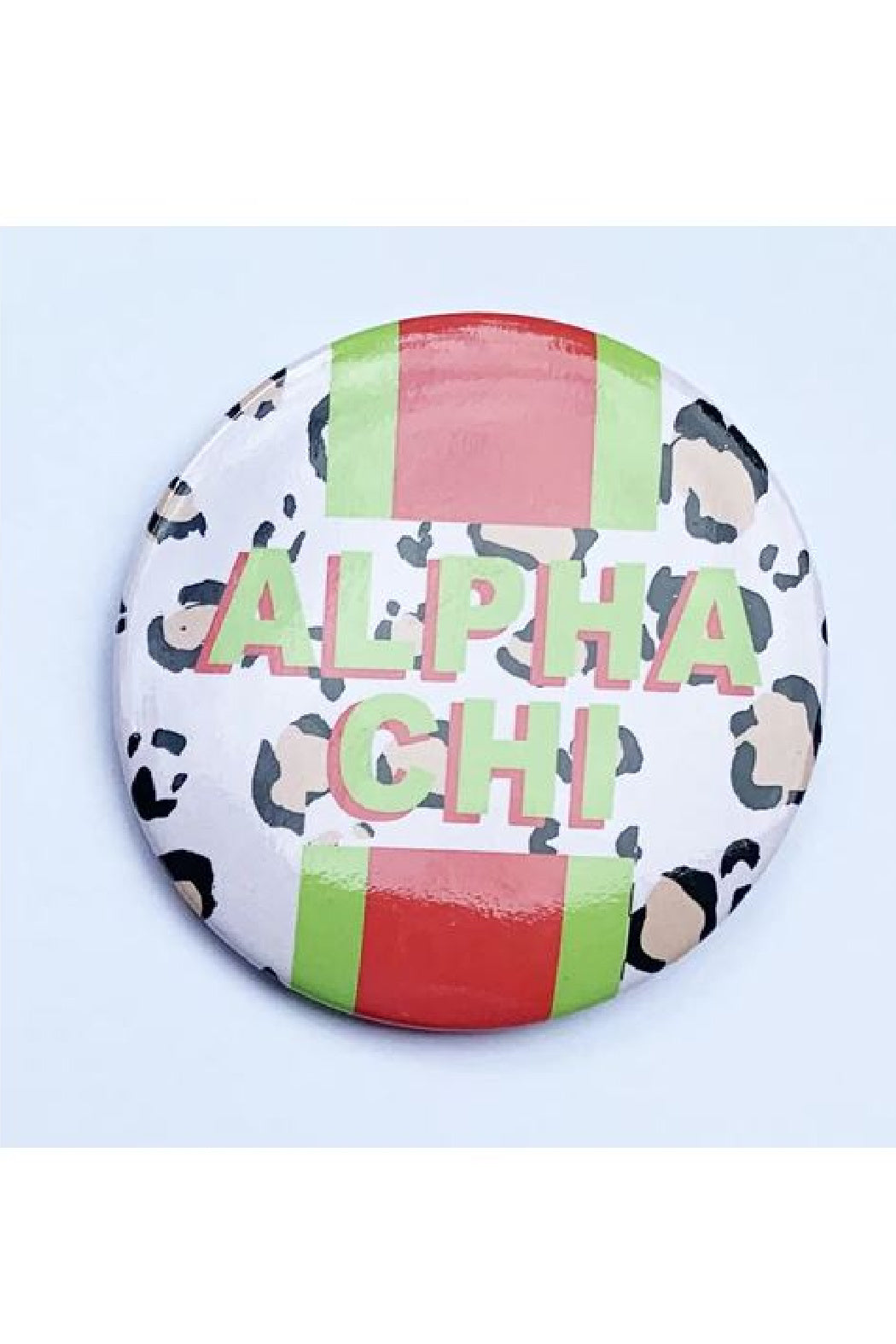 Enjoy our colorful cheetah stripe button to fasten onto your book bag, game day outfit or anywhere that needs a little flair in your sorority colors!