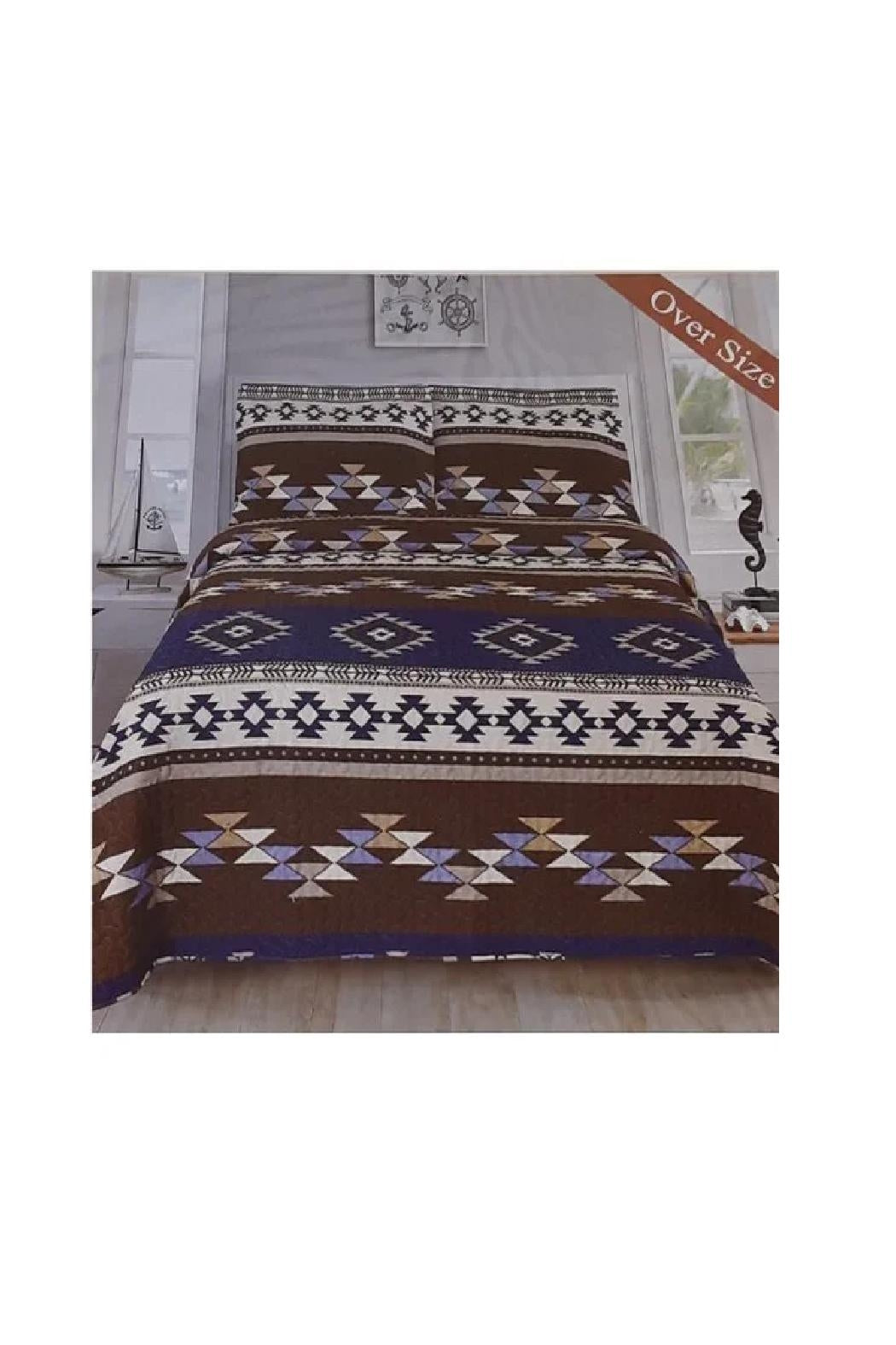 Southwestern Design 3 Piece Quilted Bedspread Set - Aztec Print