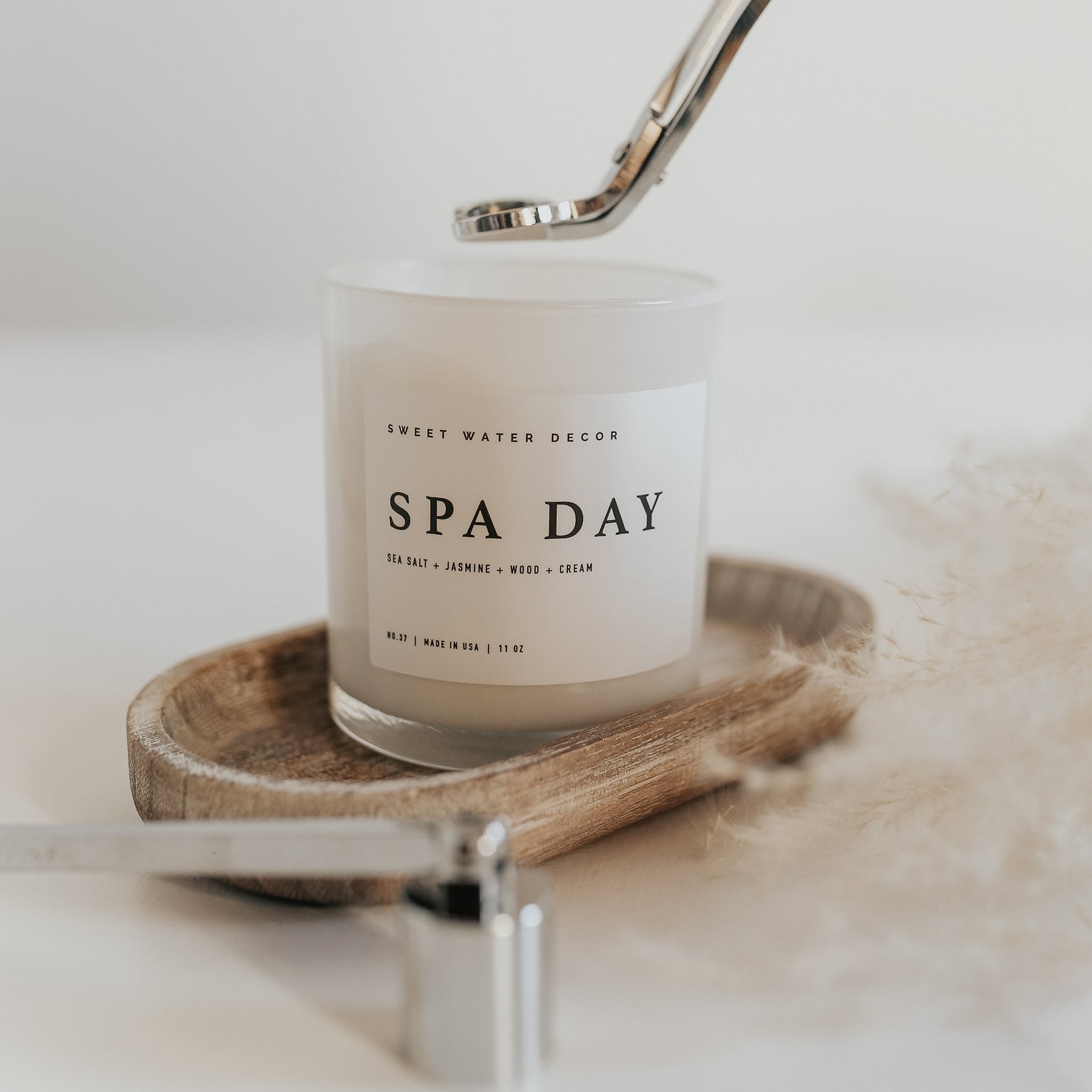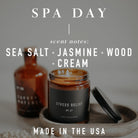 Soft nature and instrumental music begins to play as you put on your robe and slippers. As you sink into your chair, relaxation comes over you. You leave life and stress behind. This is your time. Notes of sea salt, jasmine, and wood surround you. This is Spa Day.