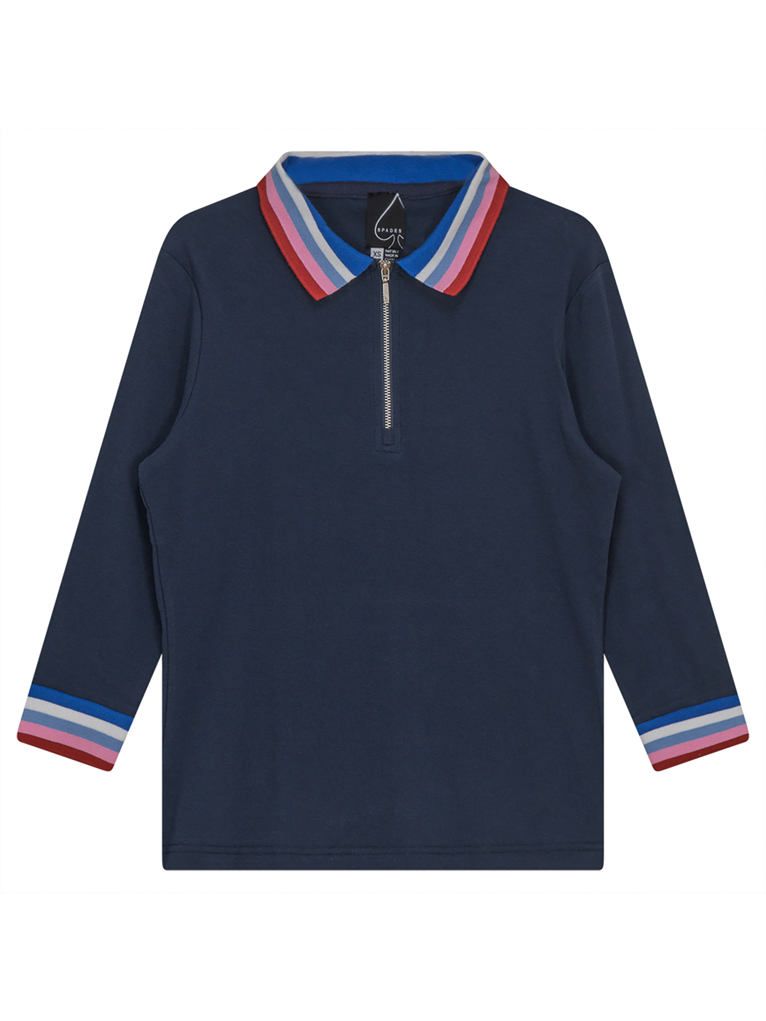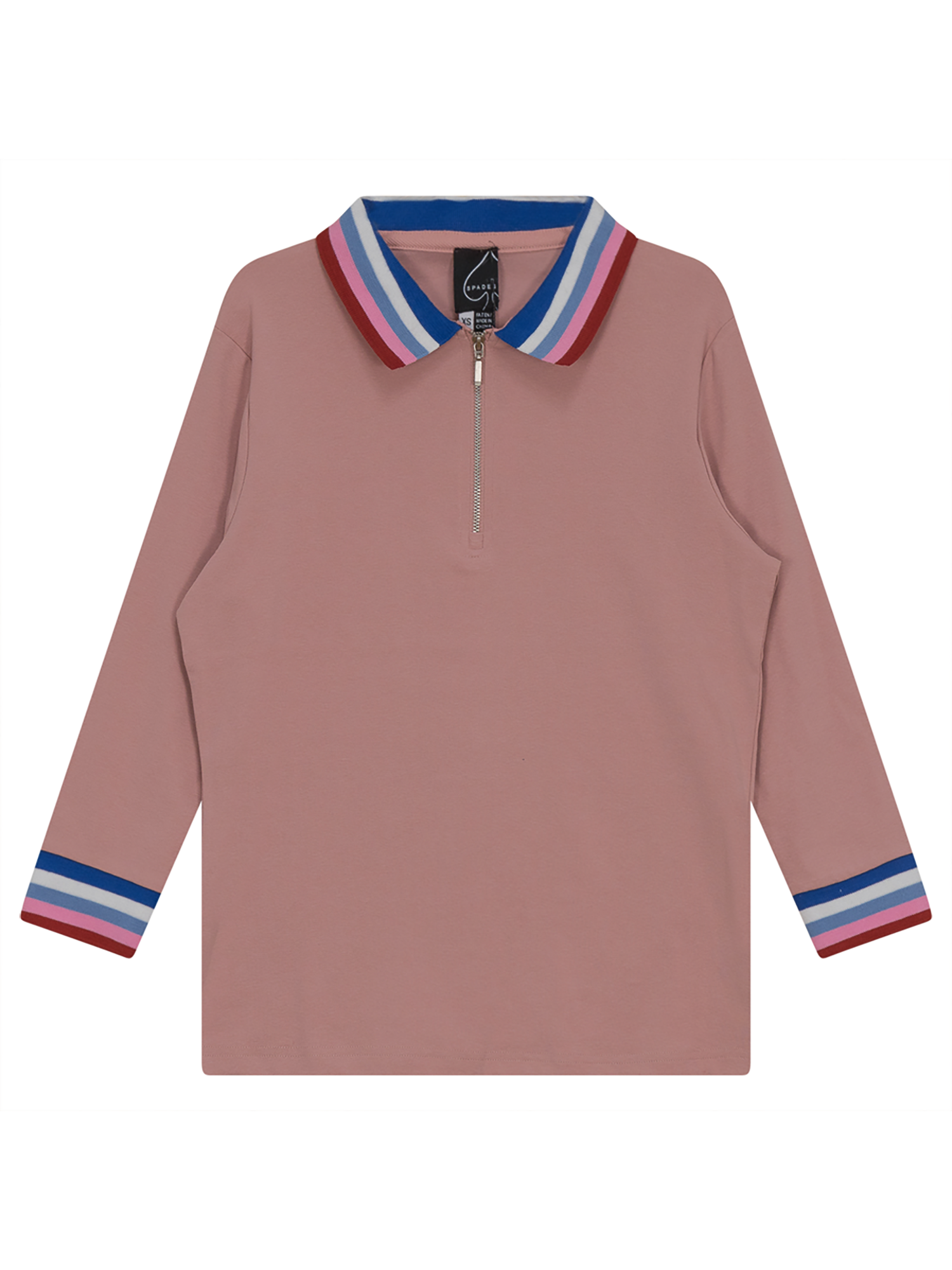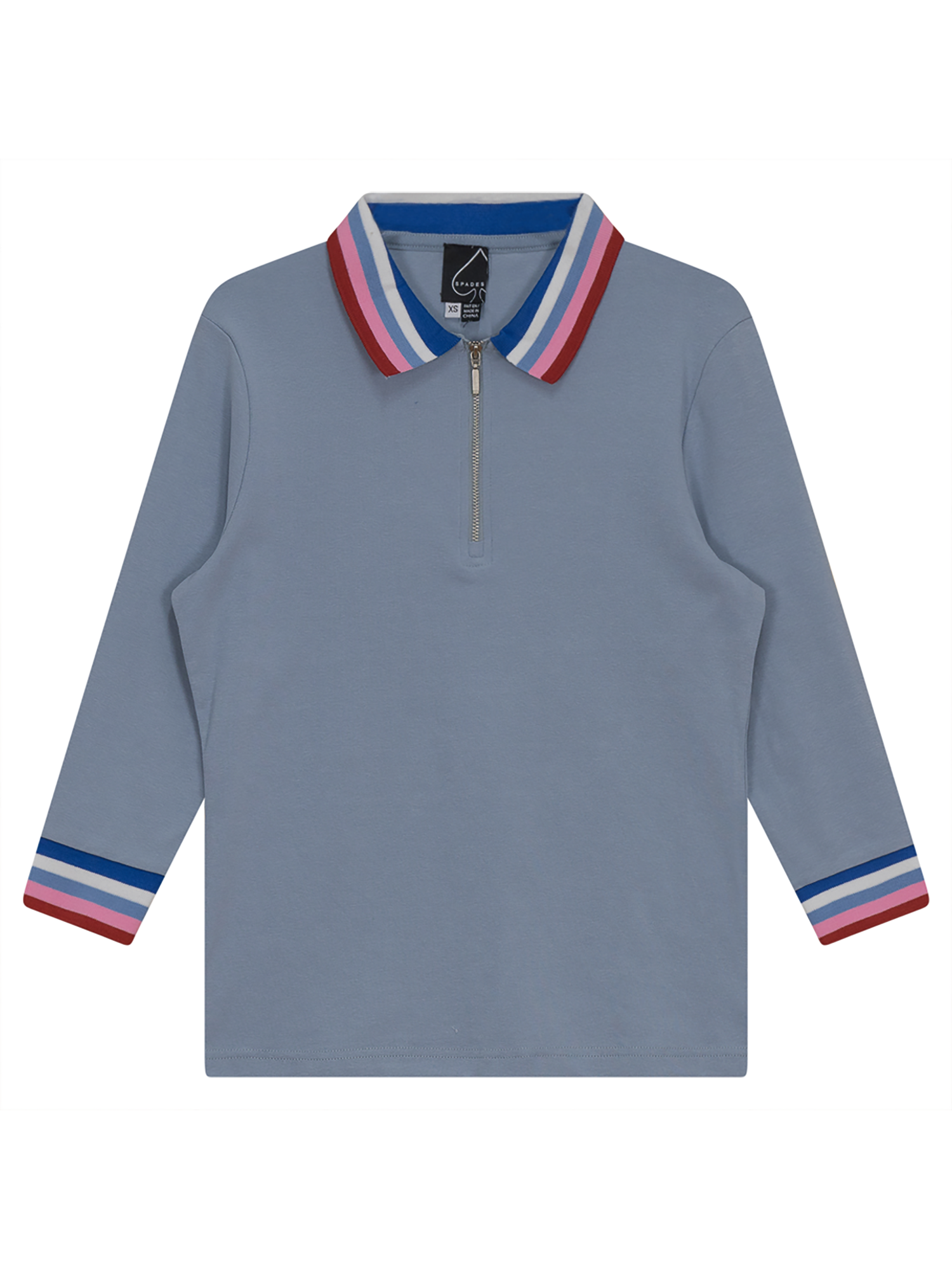 •LOOK: New from Spades is a classic half zip polo. Perfect collar for keeping down or popping up (this one will stay popped). It has three-quarter sleeves that finish with the same pattern as the collar. If left unzipped, a layering piece underneath will show nicely. The fabric is a very soft and smooth stretchy knit. Perfect top for those casual gatherings with friends. Sporty enough to wear to a baseball game or tennis match. Relaxed fit hip length.