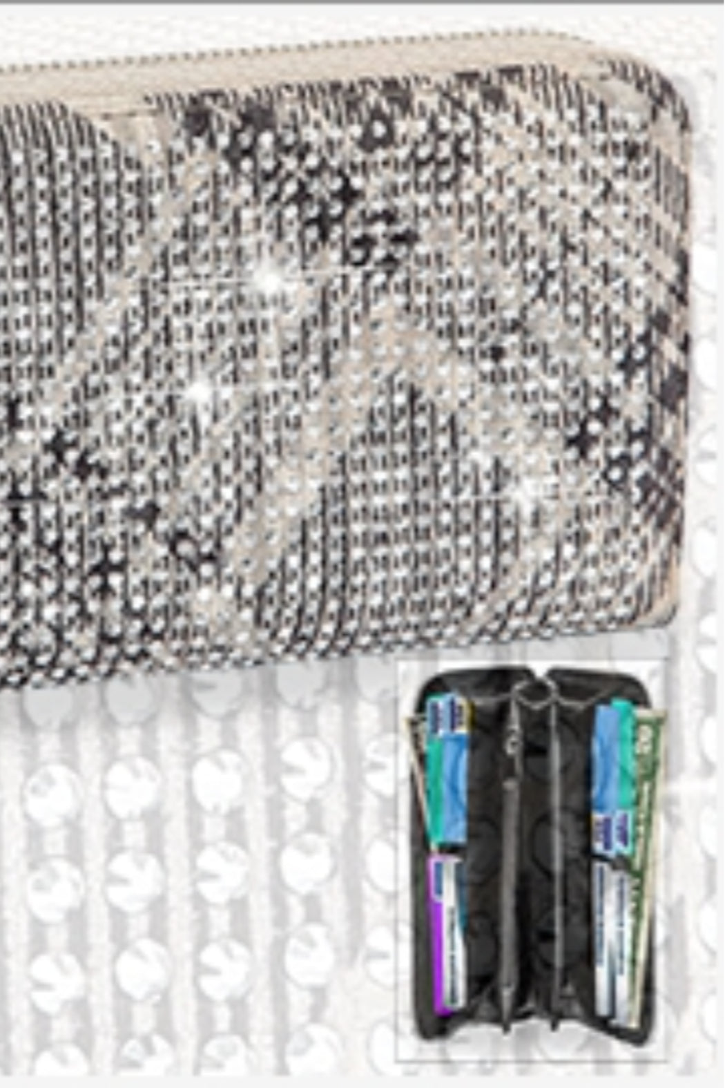 Faux leather in a classic plaid print and covered in sparkling rhinestones sets this accordion wallet apart!
