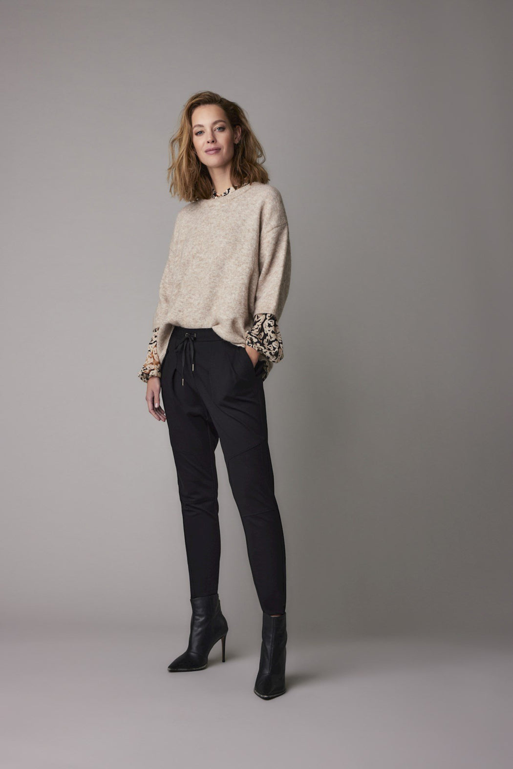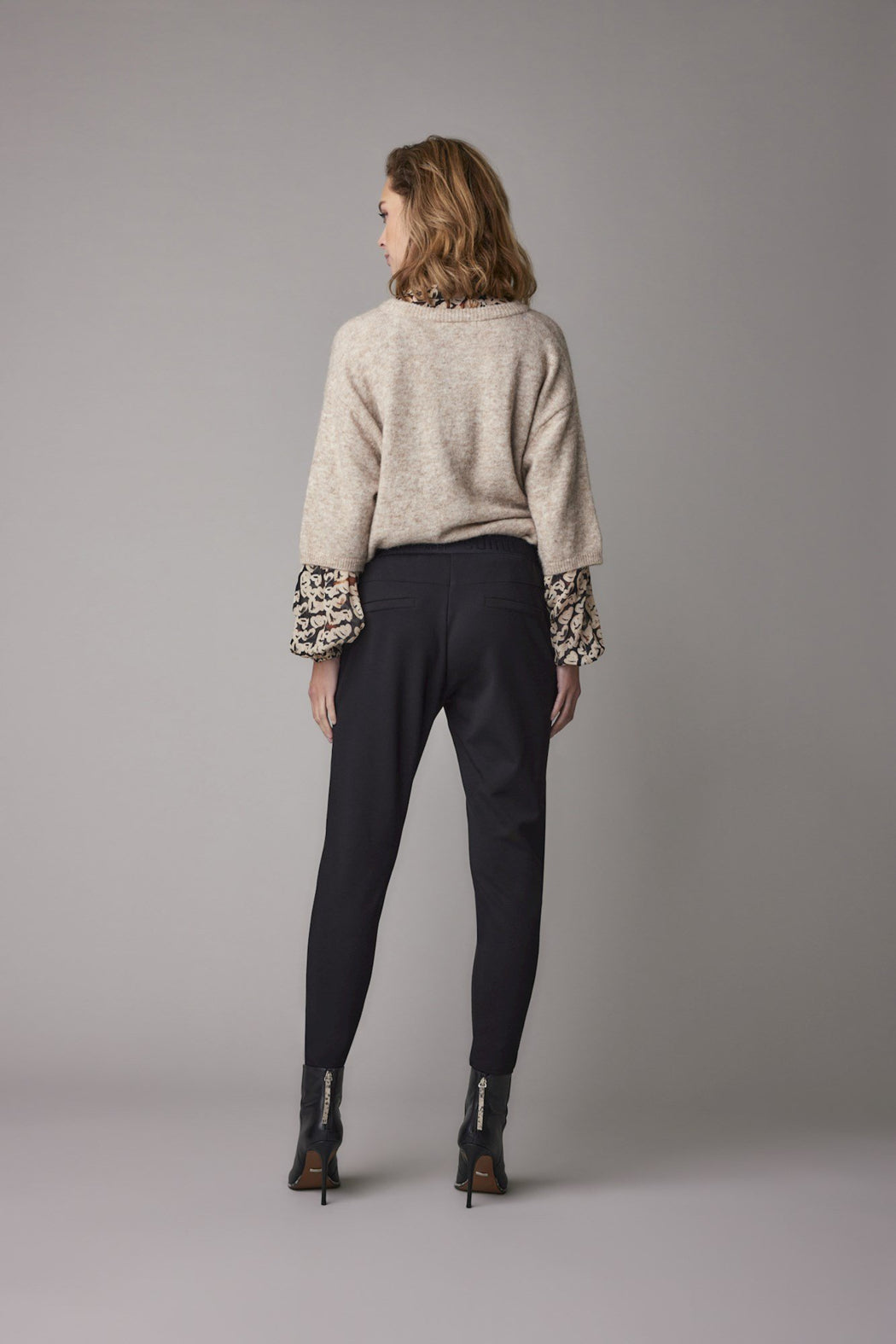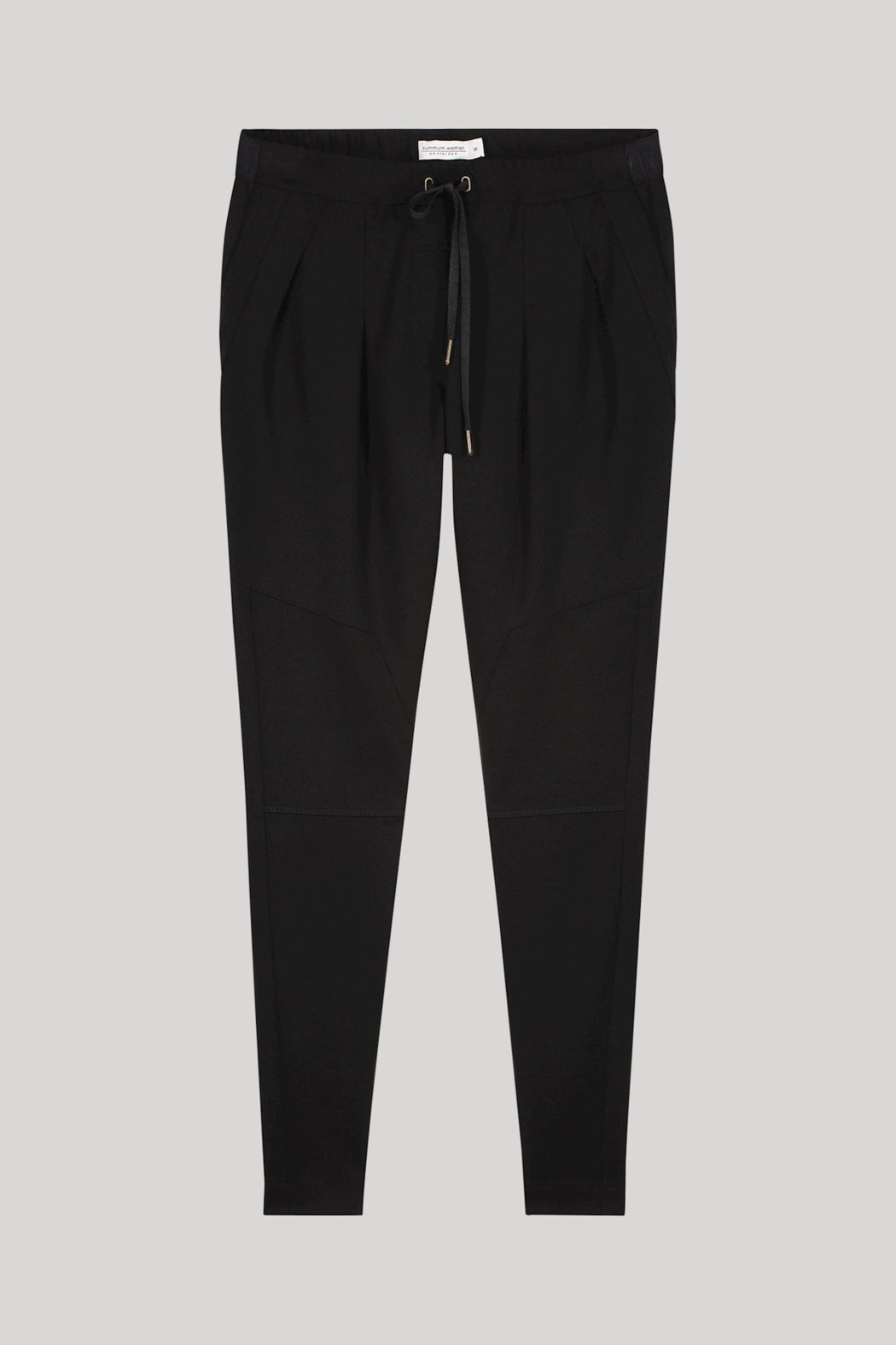Sporty Punto Milano trousers with side pockets in the front, slit pockets in the back, Summum elastic on the back of the waistband and a button fastening on the front.