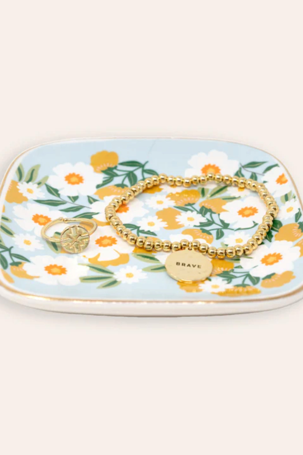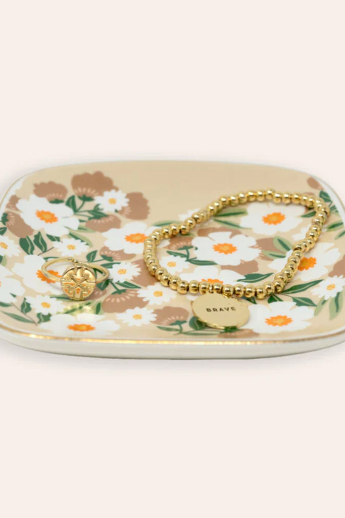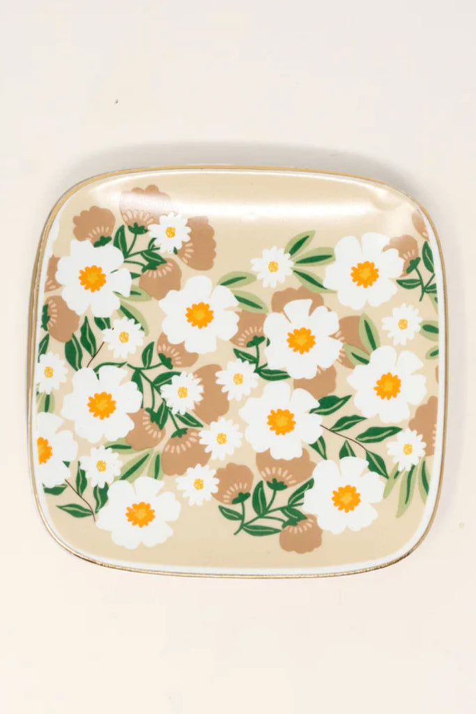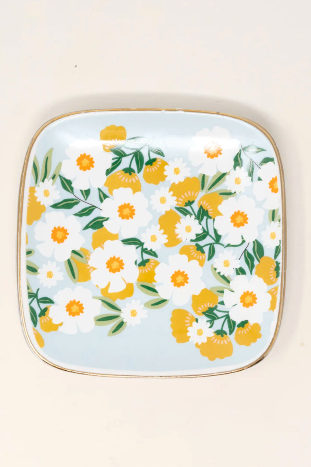 Our new ceramic trinket trays are perfect for all of your dainty items! Store your jewelry, keys, and more on our floral printed dish with a gold, metallic rim.