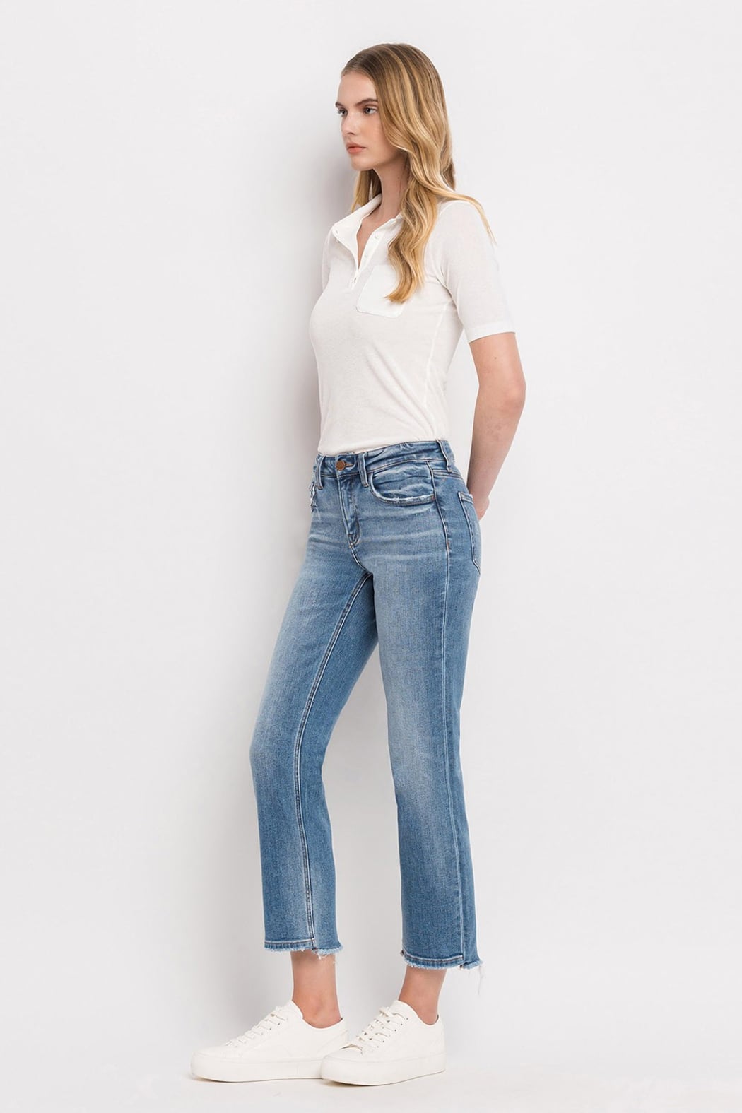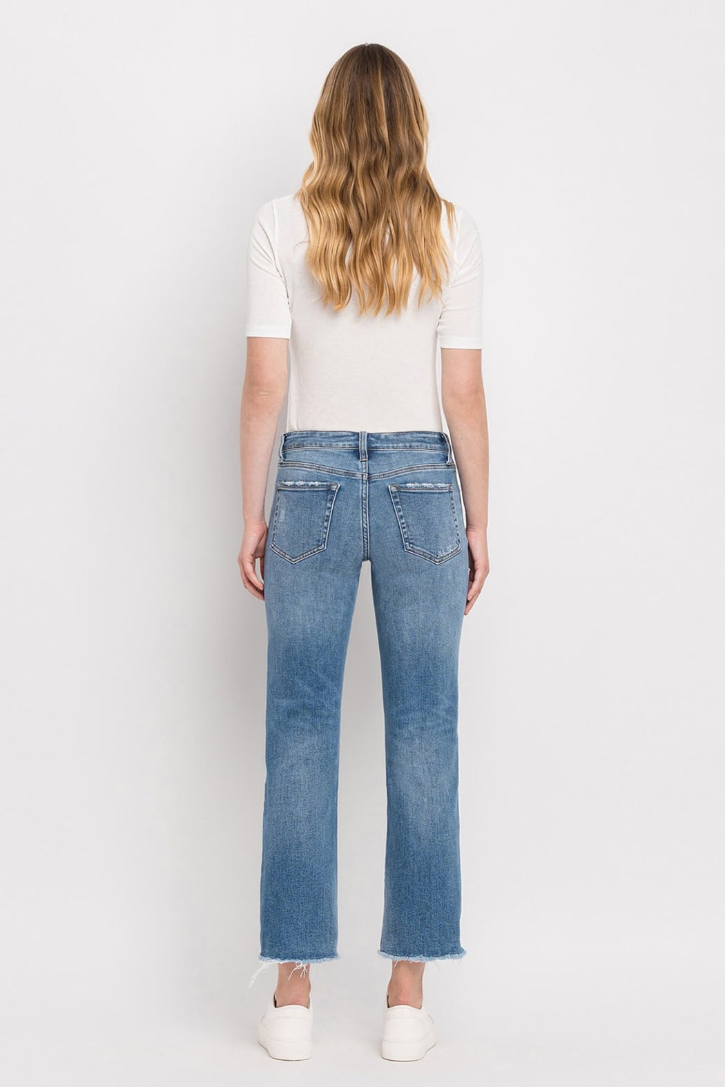 COMFORT STRETCH DENIM, MID RISE WAIST, CROPPED LENGTH, STRAIGHT JEANS