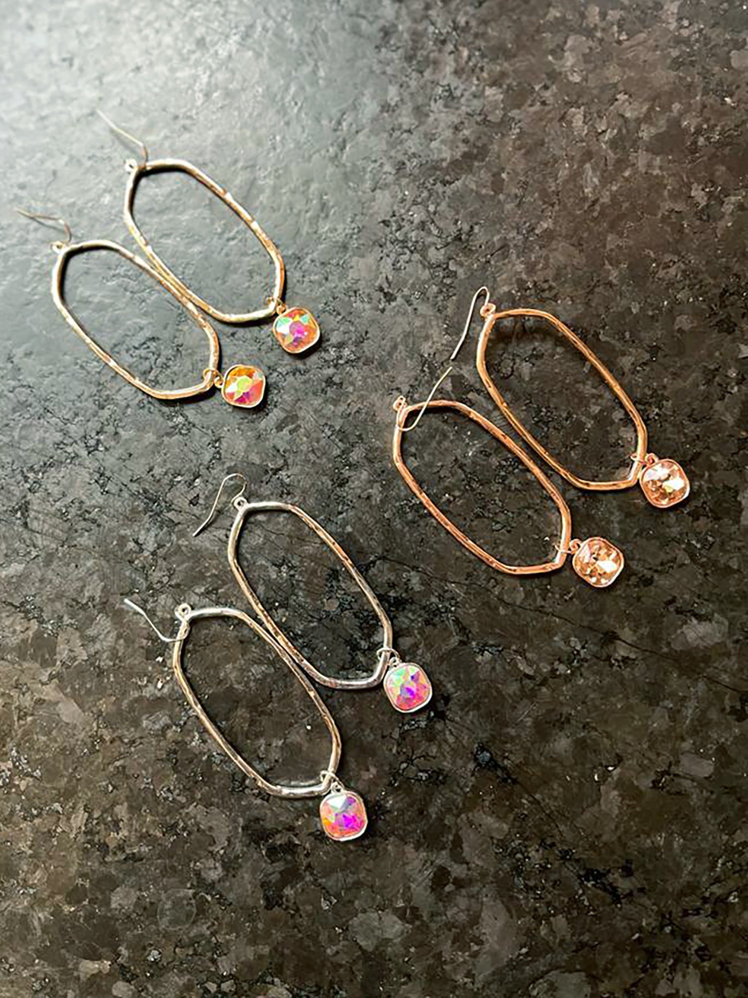 These beautiful drop earrings with faceted stones are designer Kendra Scott inspired. The earrings have a beautiful sparkly look to them in silver metal with multi colored glass , gold metal tone with multi colored glass or rose gold metal with rose gold glass .