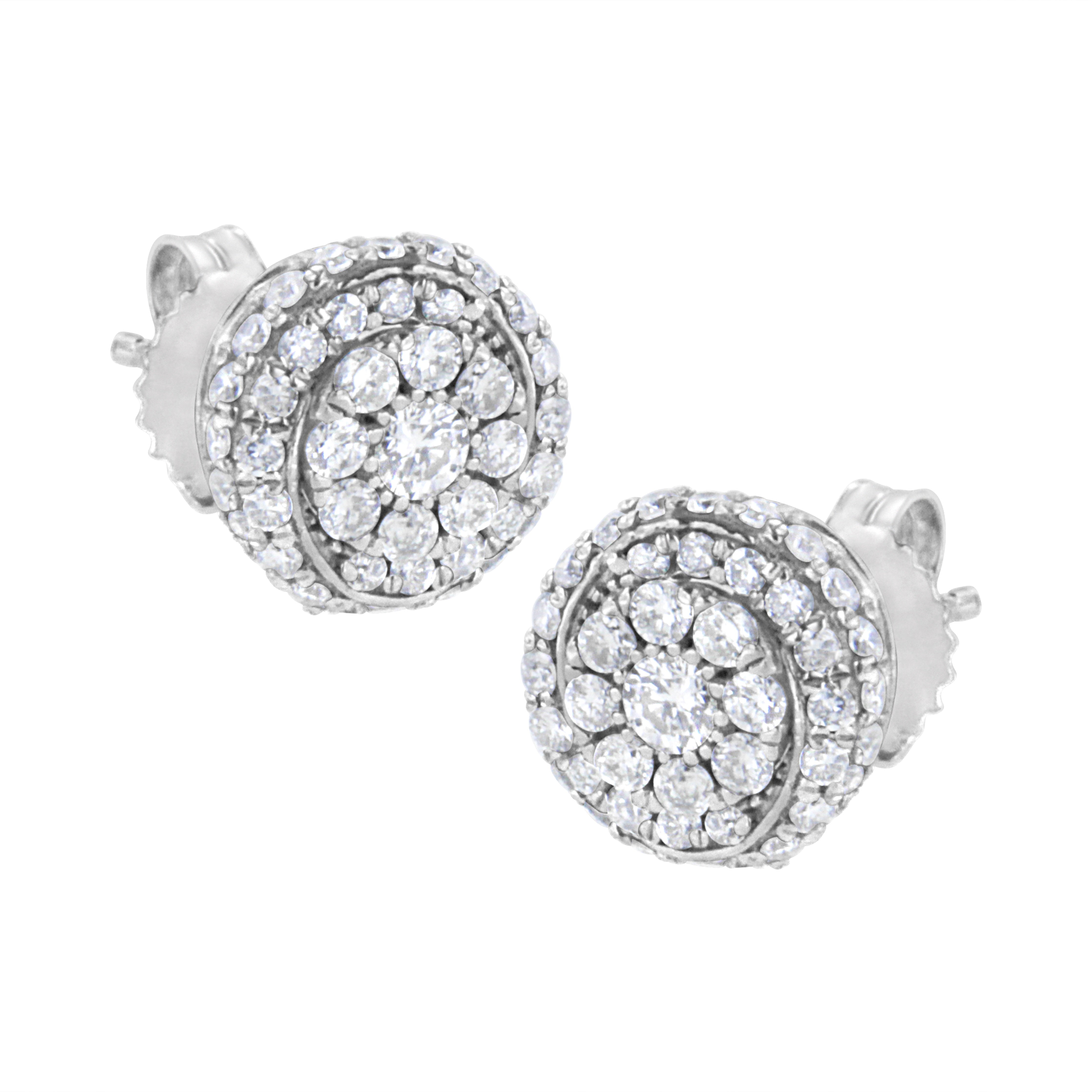 These gorgeous studs are made with a stunning 1 ct tdw floral cluster design. Created in the finest .925 sterling silver, these earrings are made with lab-grown diamonds in a prong setting. The diamonds are sustainable and ethical, so you can feel good about this purchase. These earrings come with a push back mechanism for a more secure fit.