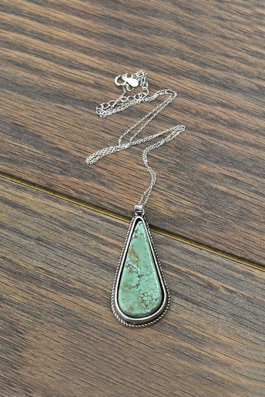 Sterling-Silver-Chain Natural-Turquoise-Stone Pendant-Necklace