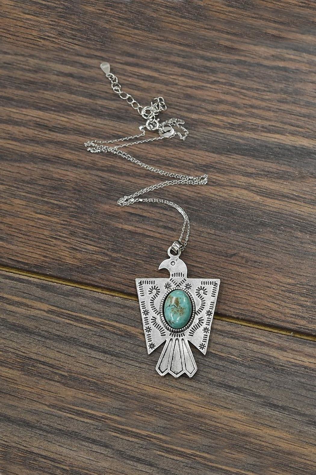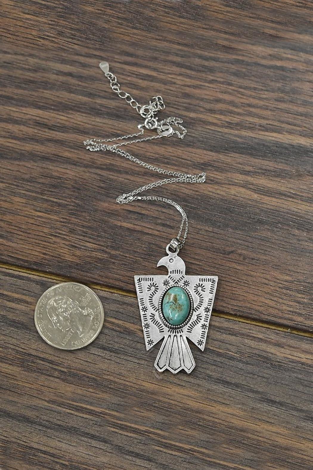 Sterling Silver-Chain-Necklace Natural-Turquoise Thunderbird-Necklace