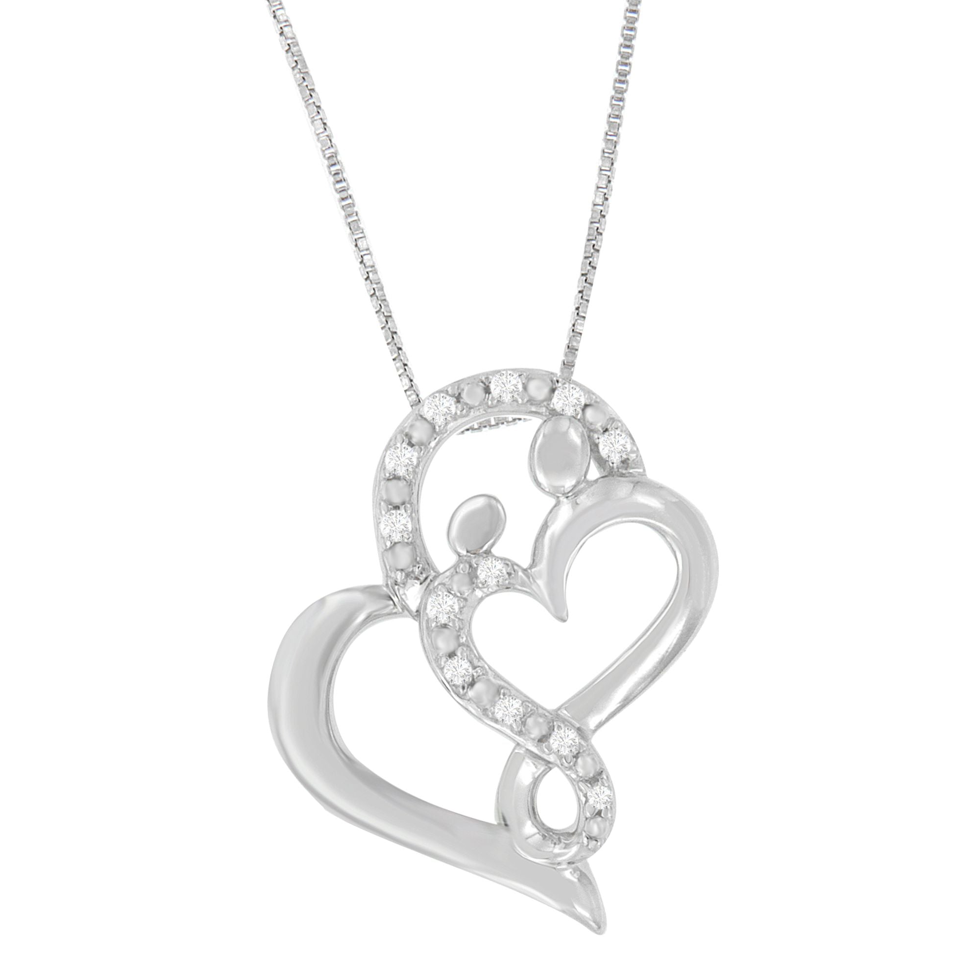 Sterling Silver Round-Cut Diamond Heart Pendant Necklace (0.11 Cttw, H-I Color, I1-I2 Clarity)