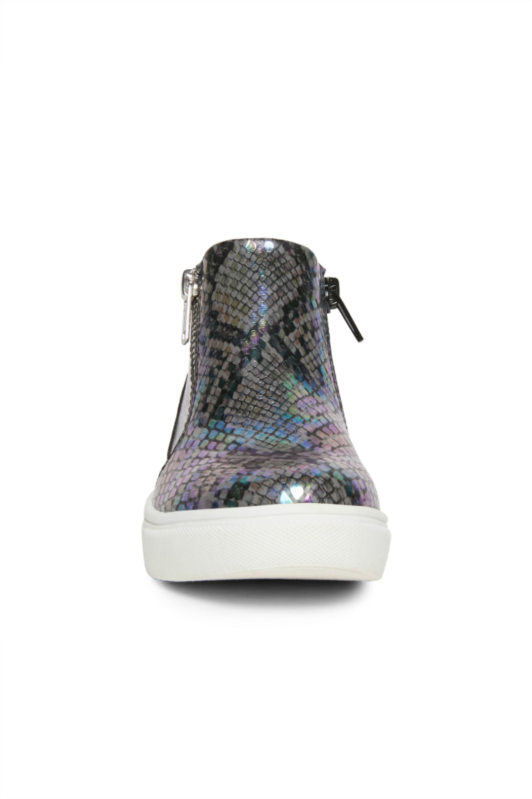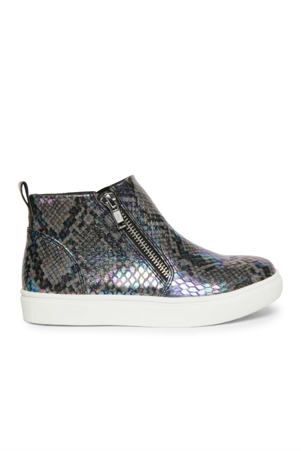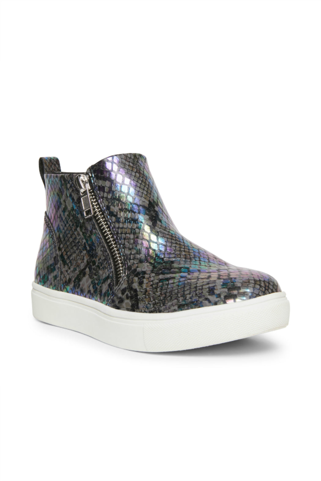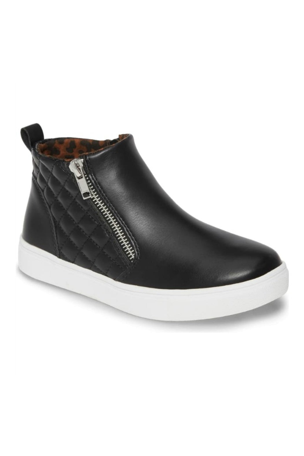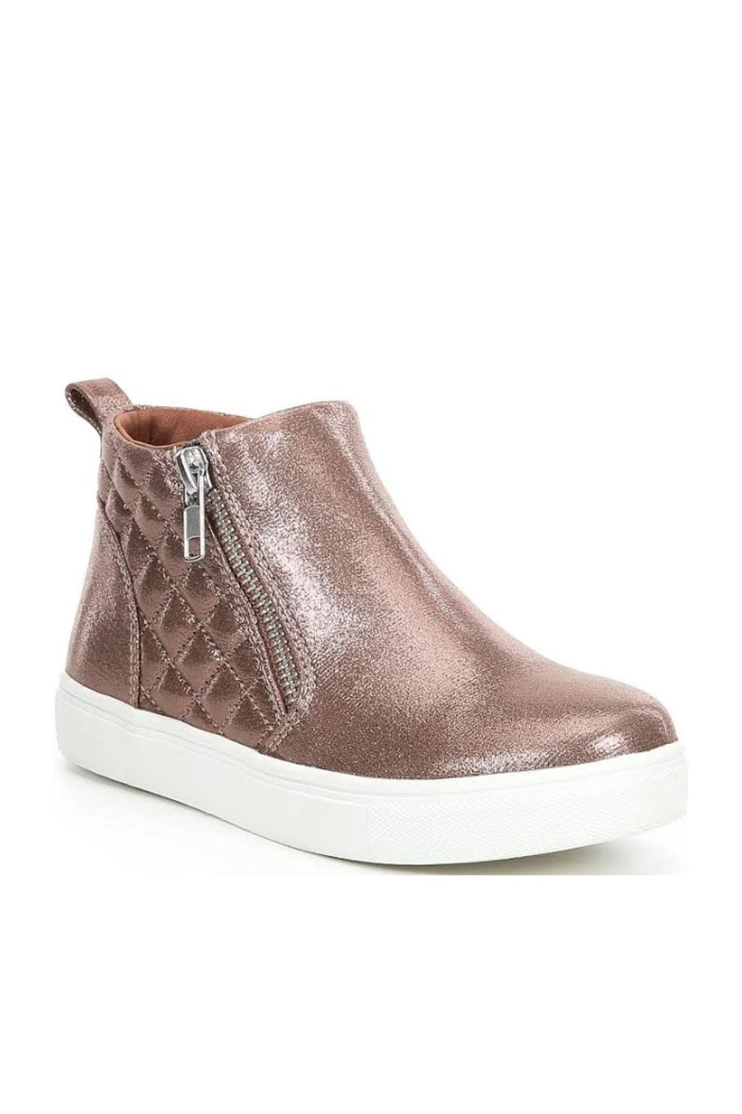 Quilted diamonds wrap the sides and back of a high-top sneaker crafted with a simple upper and a sporty bumper cupsole. 1" platform, side zip closure, synthetic upper, lining and sole