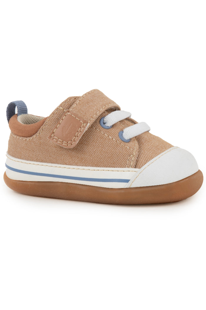 Watch his world expand step by step in the Stevie first walker. Classic khaki twill, eco-friendly recycled materials and a flexible rubber outsole combine to create a lightweight, comfy pair perfect for his budding adventures.