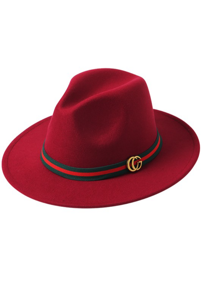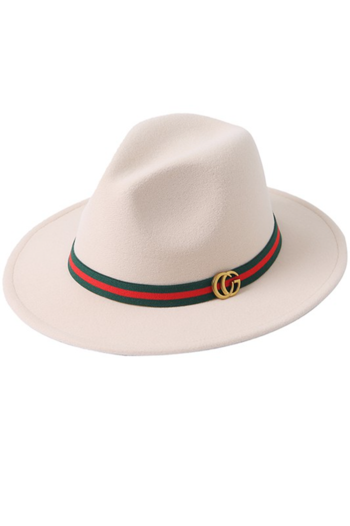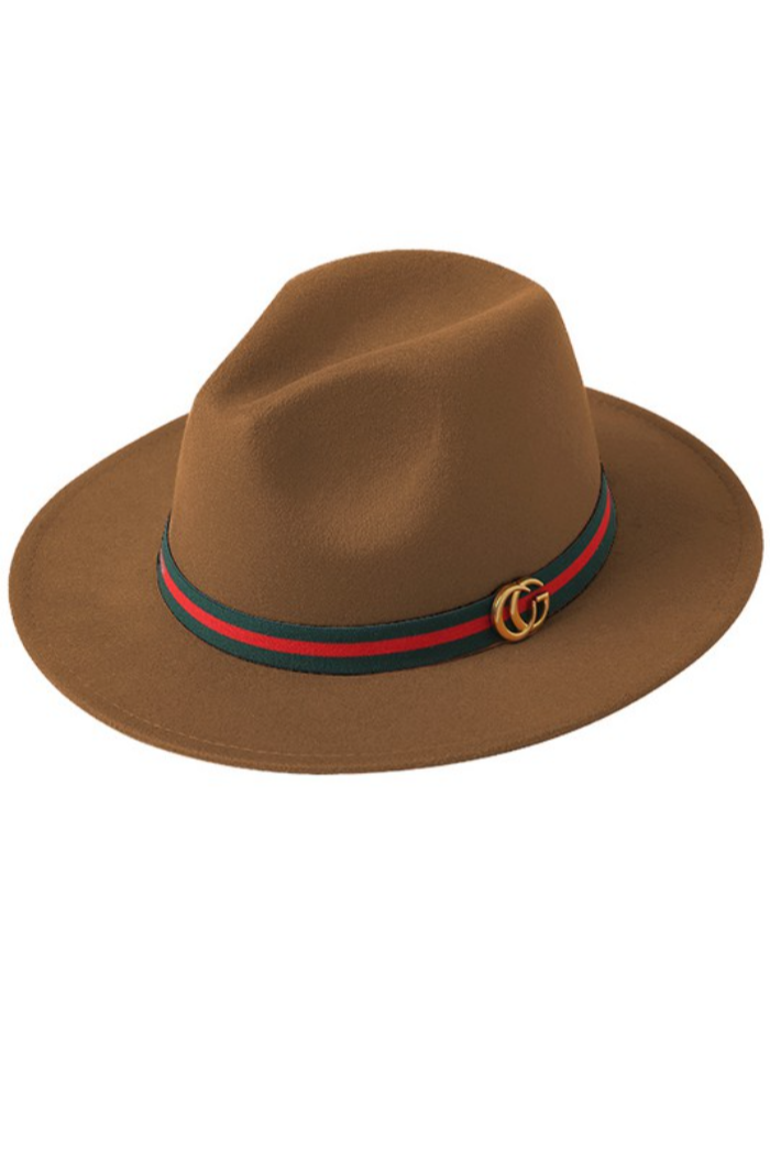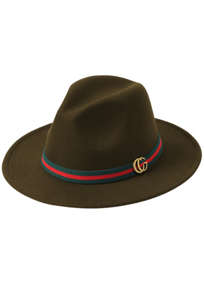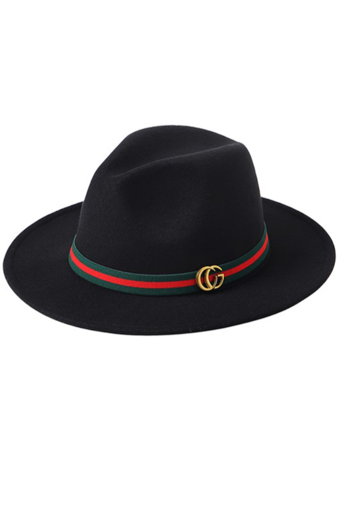 Interlocking Logo Emblem Tri-Stripe Elastic Band Decor Standard Stiff Brim Felt Rancher Hat