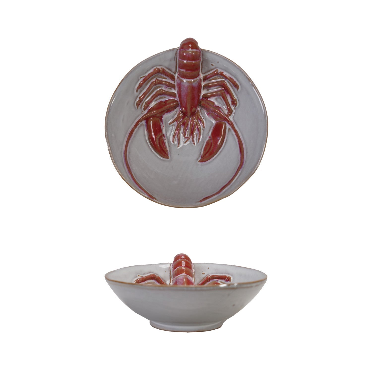 Stoneware Bowl with 3D Lobster, Reactive Glaze (Each One Will Vary)