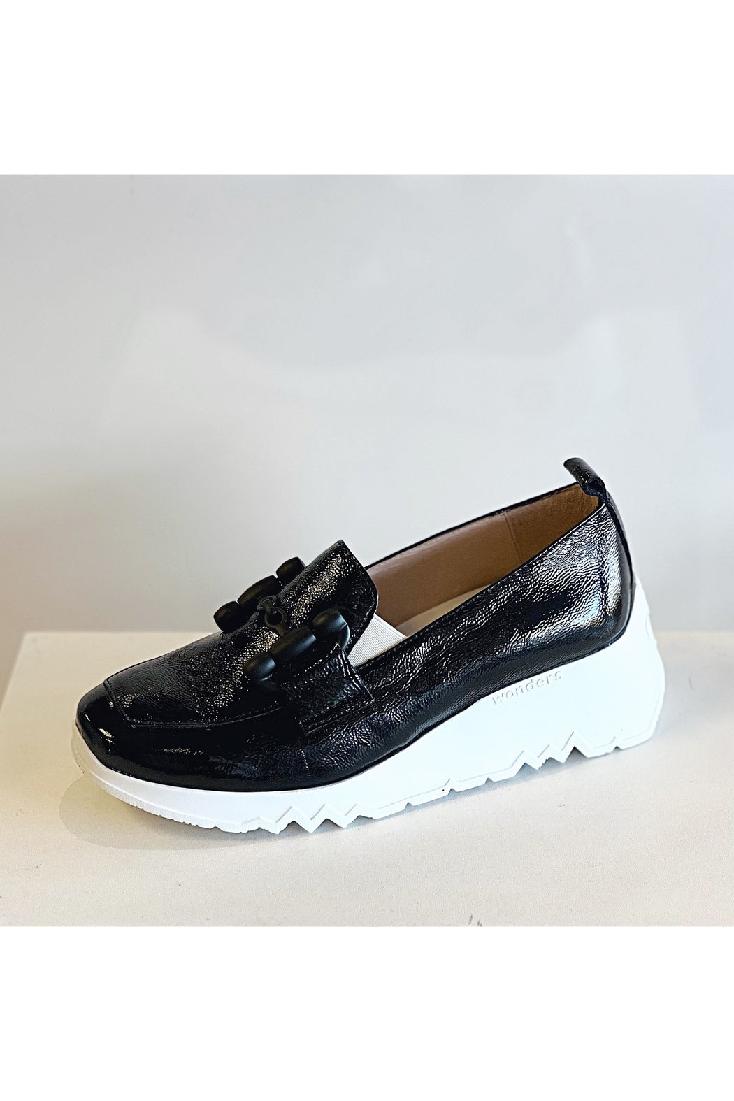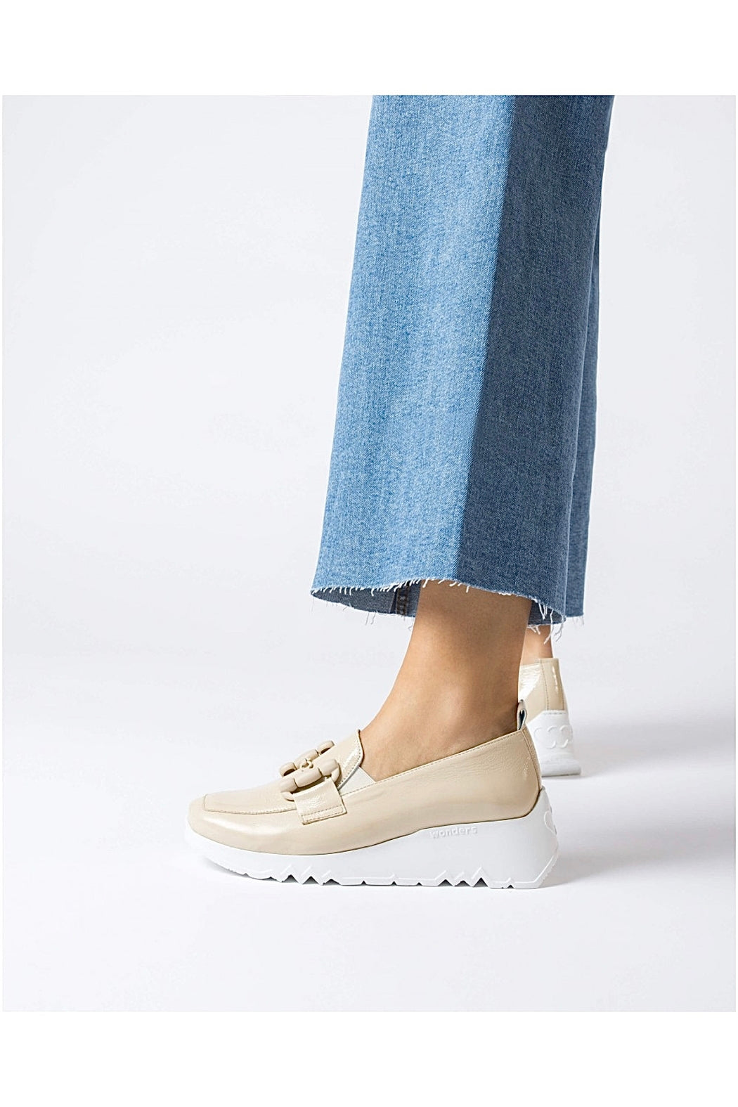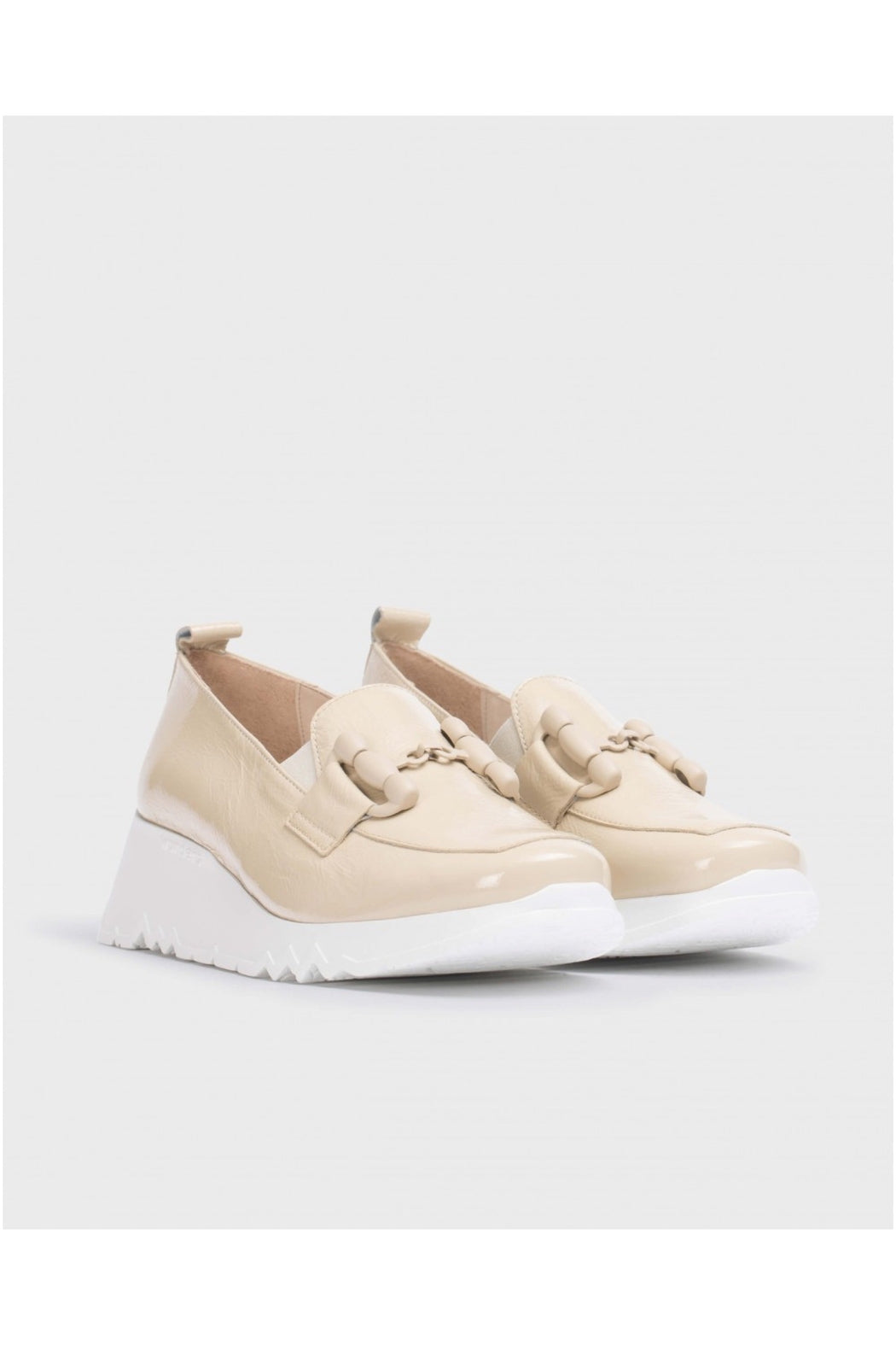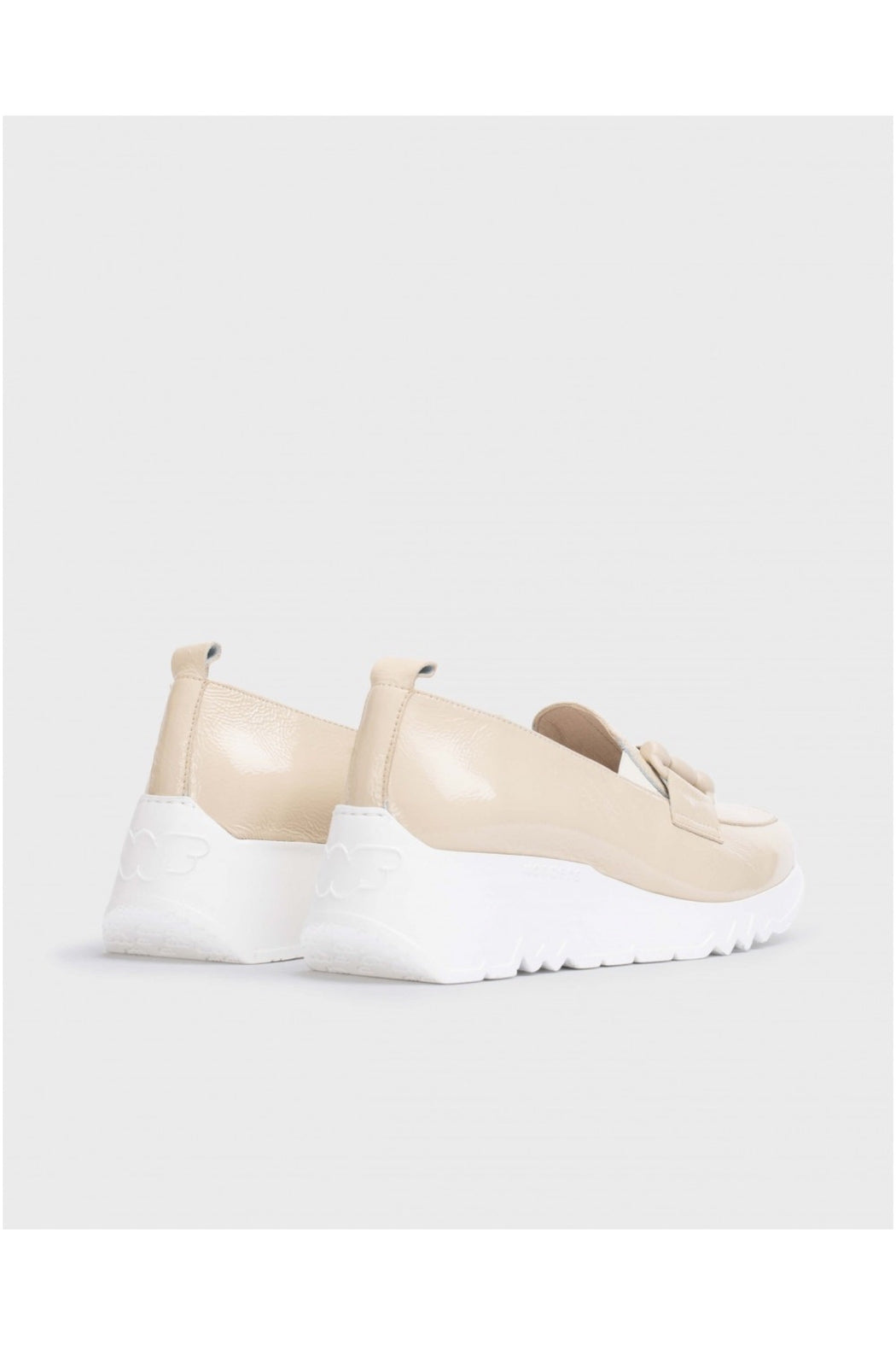 Beige textured leather moccasin. This versatile moccasin has a matching link embellishment, a pull tab and elastic at the sides for a better fit. The maxi track sole has been developed using WondersFly ™ technology that provides extreme lightness and comfort. The removable memory gel insole cushions your every step.
