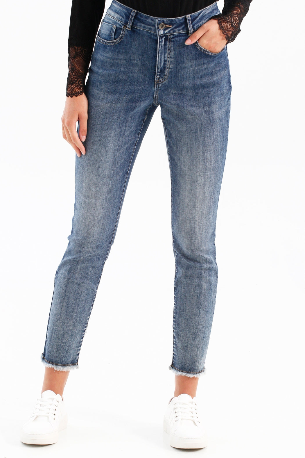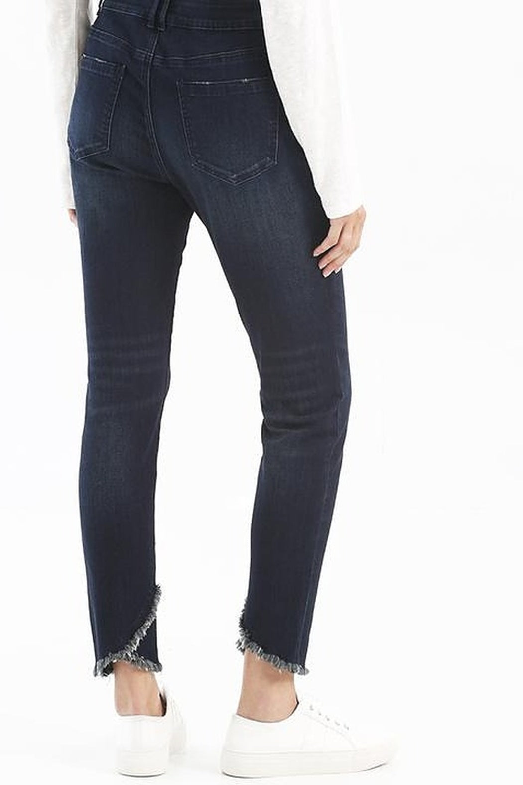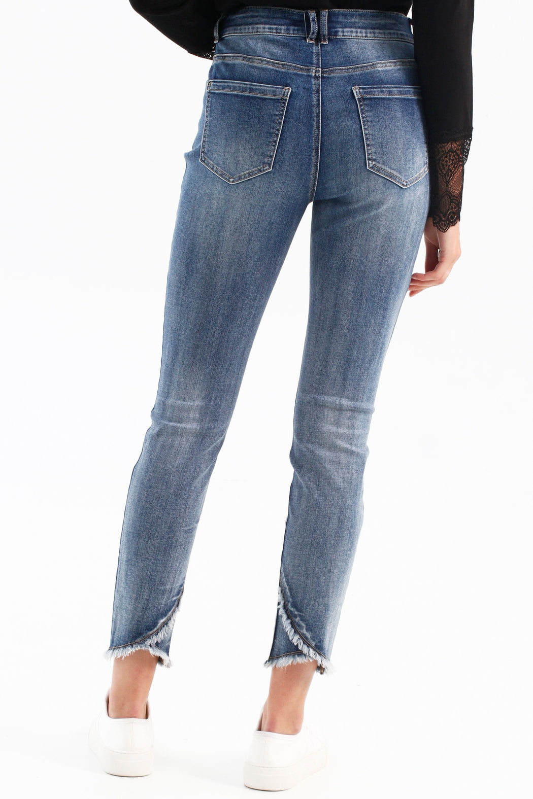 Stretch Denim Jeans With Released Crossover Hem