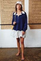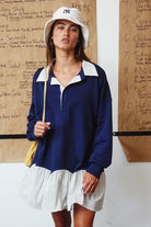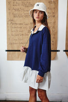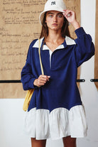 Chic meets sporty in the Stripe Contrast Detail Collared Mini T-Shirt Dress—a versatile piece designed for effortless style and comfort. Featuring contrast stripe detailing, a classic collared neckline, and a relaxed silhouette, this mini dress is perfect for casual outings, brunch, or laid-back weekends.