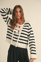 Channel timeless nautical vibes with our Striped Lace-Up Sailor Collar Sweater, a perfect blend of classic elegance and cozy comfort. Designed with bold stripes, a charming lace-up front, and a sailor-inspired collar, this sweater adds a sophisticated yet playful touch to your wardrobe.