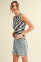 Discover the versatility and premium quality of our Stripe Ribbed Top. Made from high-quality materials, this basic top is a staple in any wardrobe. The ribbed texture adds a touch of sophistication, making it perfect for any occasion. With its high wearability, this top is a must-have for any fashion-forward individual. 95% COTTON 5% SPANDEX