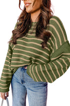 Get ready to turn heads with this fun stripe sweater. Featuring a playful stripe pattern and a loose drop shoulder fit, this sweater is the perfect mix of style and comfort. Wear it anytime, anywhere ā this versatile sweater will add an extra oomph to your outfit, without sacrificing coziness. With its round neck and long sleeves, this sweater is a timeless piece that can be worn year-round. Dress it down with jeans or dress it up with a skirt and heels ā the choice is yours!