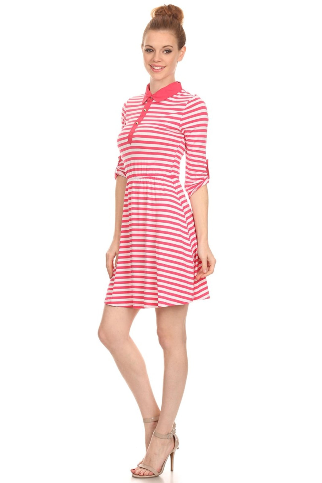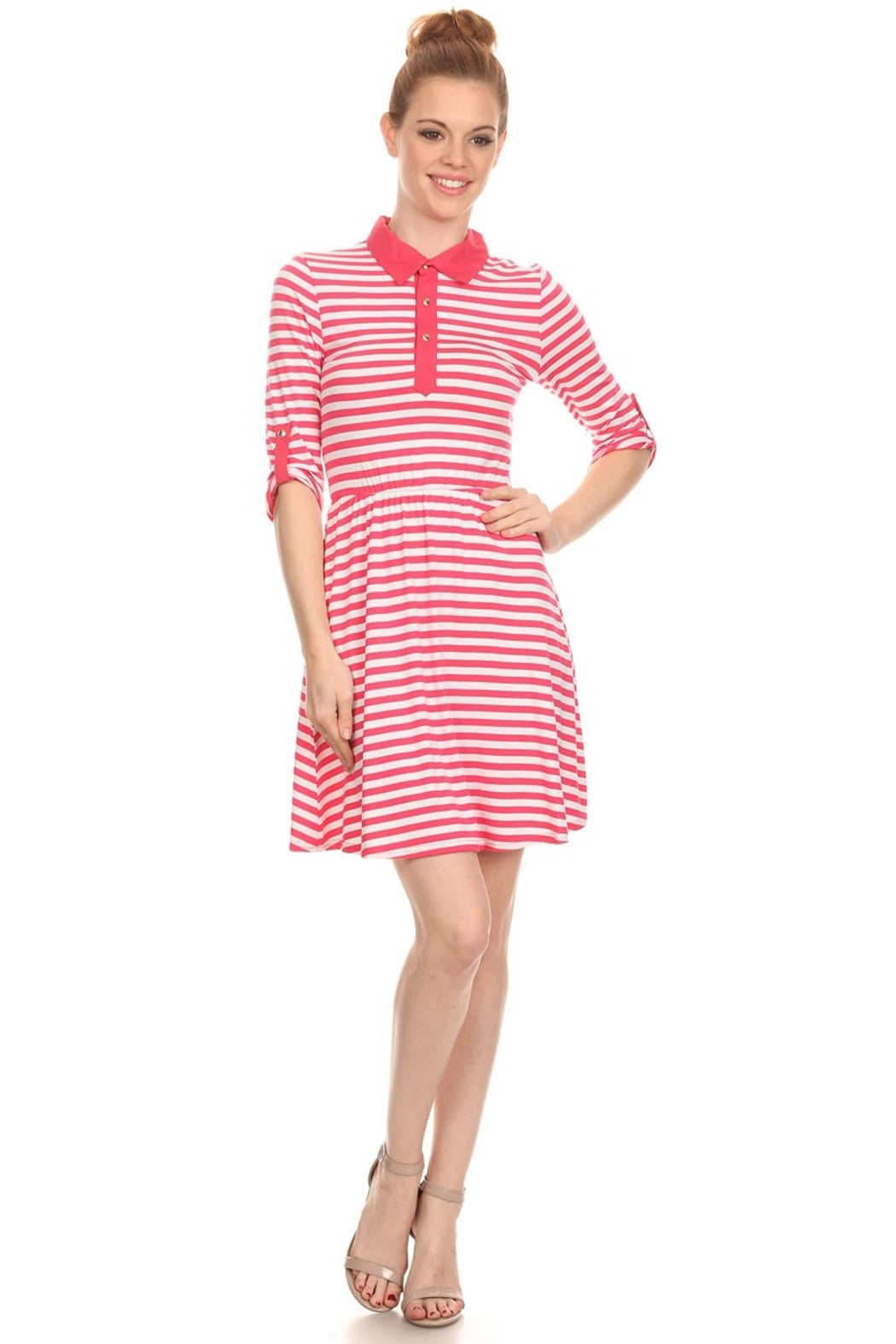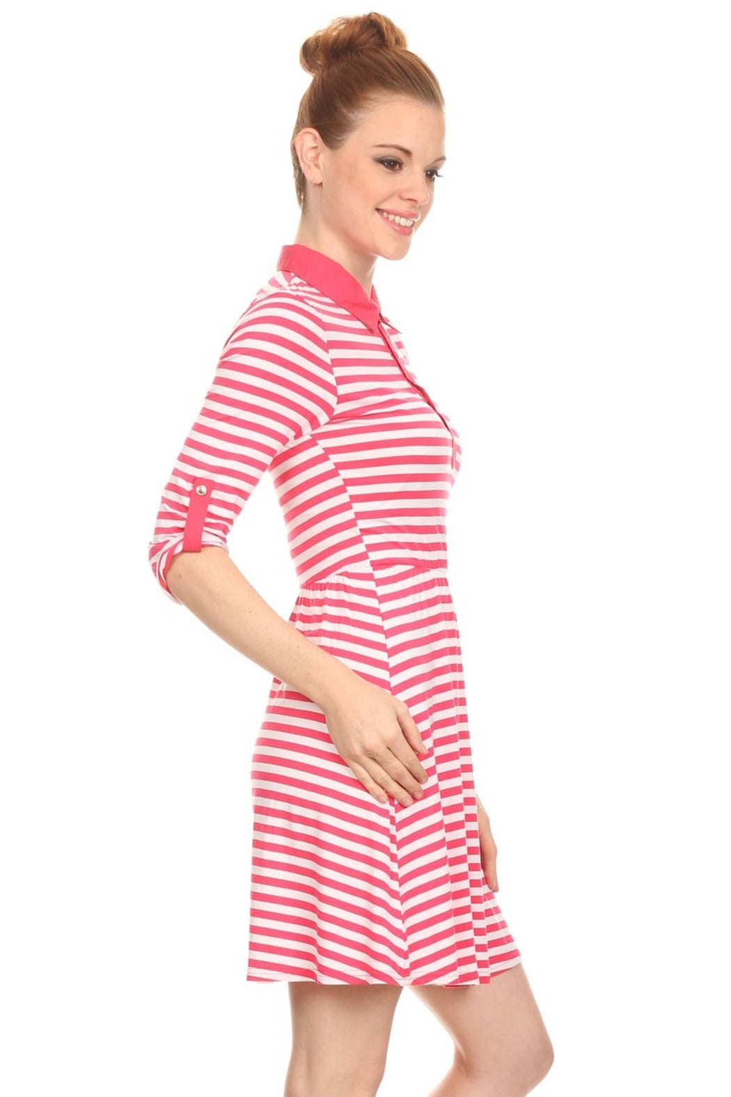 Want to add a nautical touch to your life without actually buying a boat?It's easy! Simply slip into this striped jersey knit dress. It's complete with fresh details like 3/4 rolled sleeves, button closure, collar, and cinched waist.