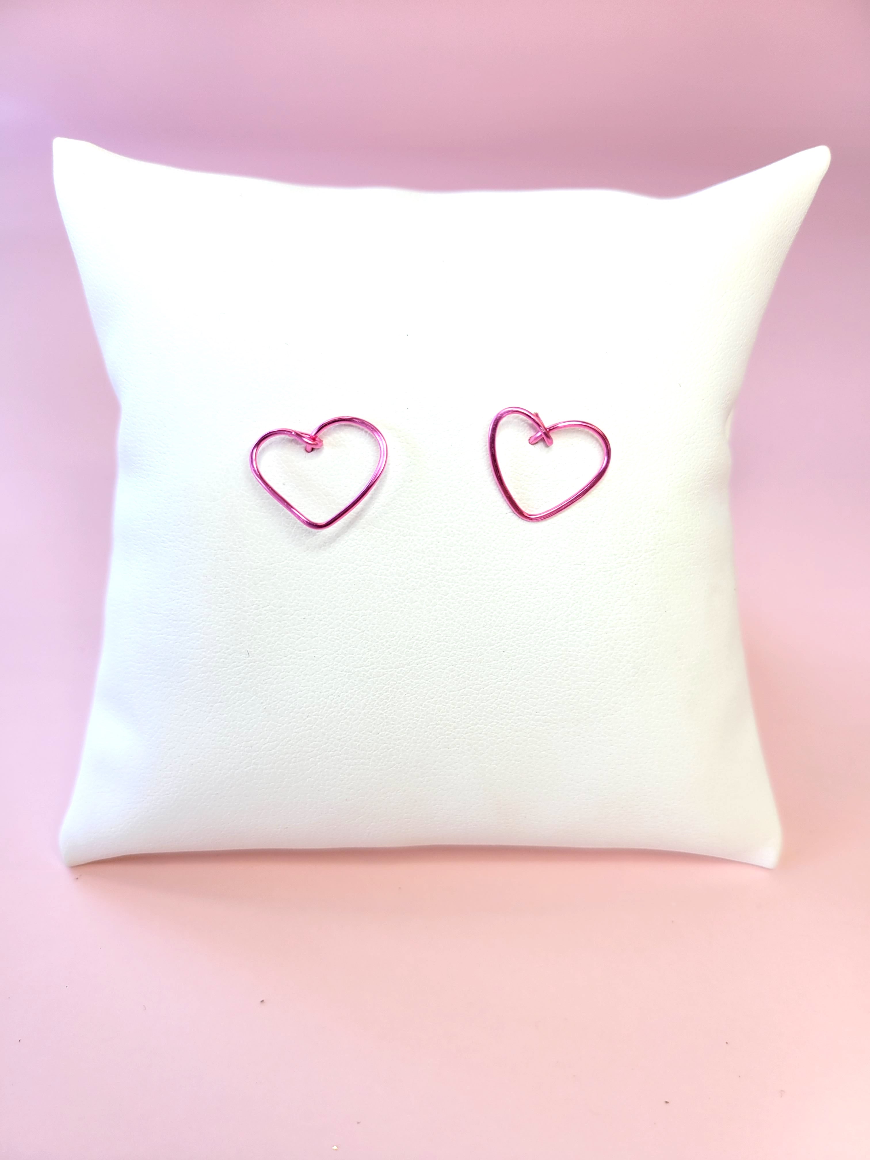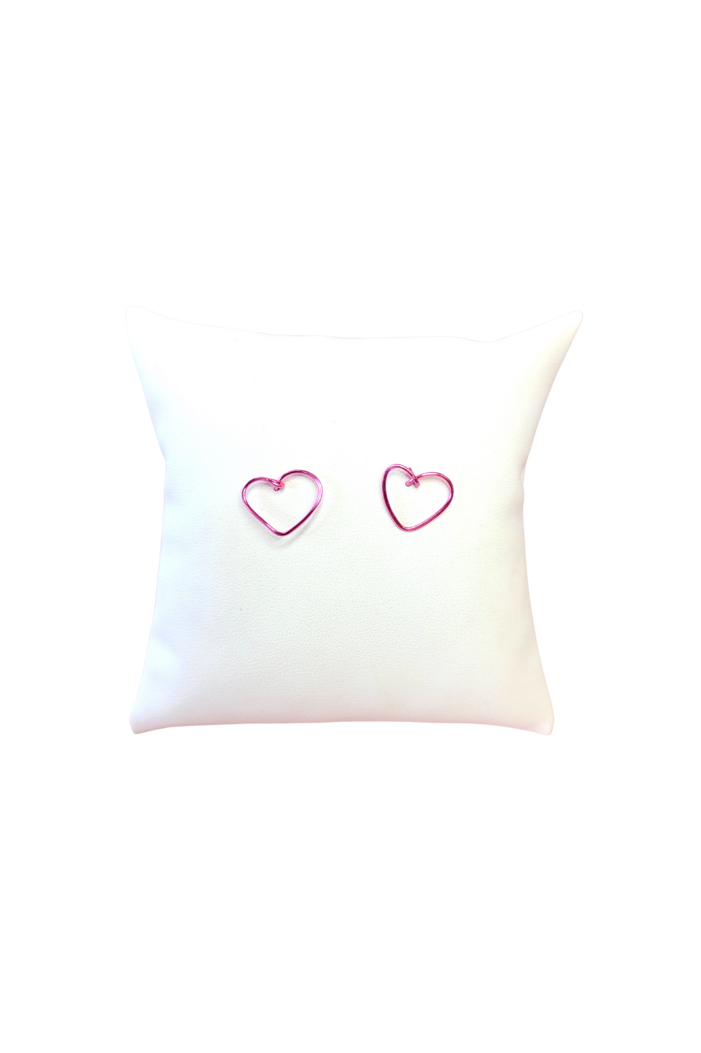 Dainty hearts hammered to create a stud style earring in the color hot pink.