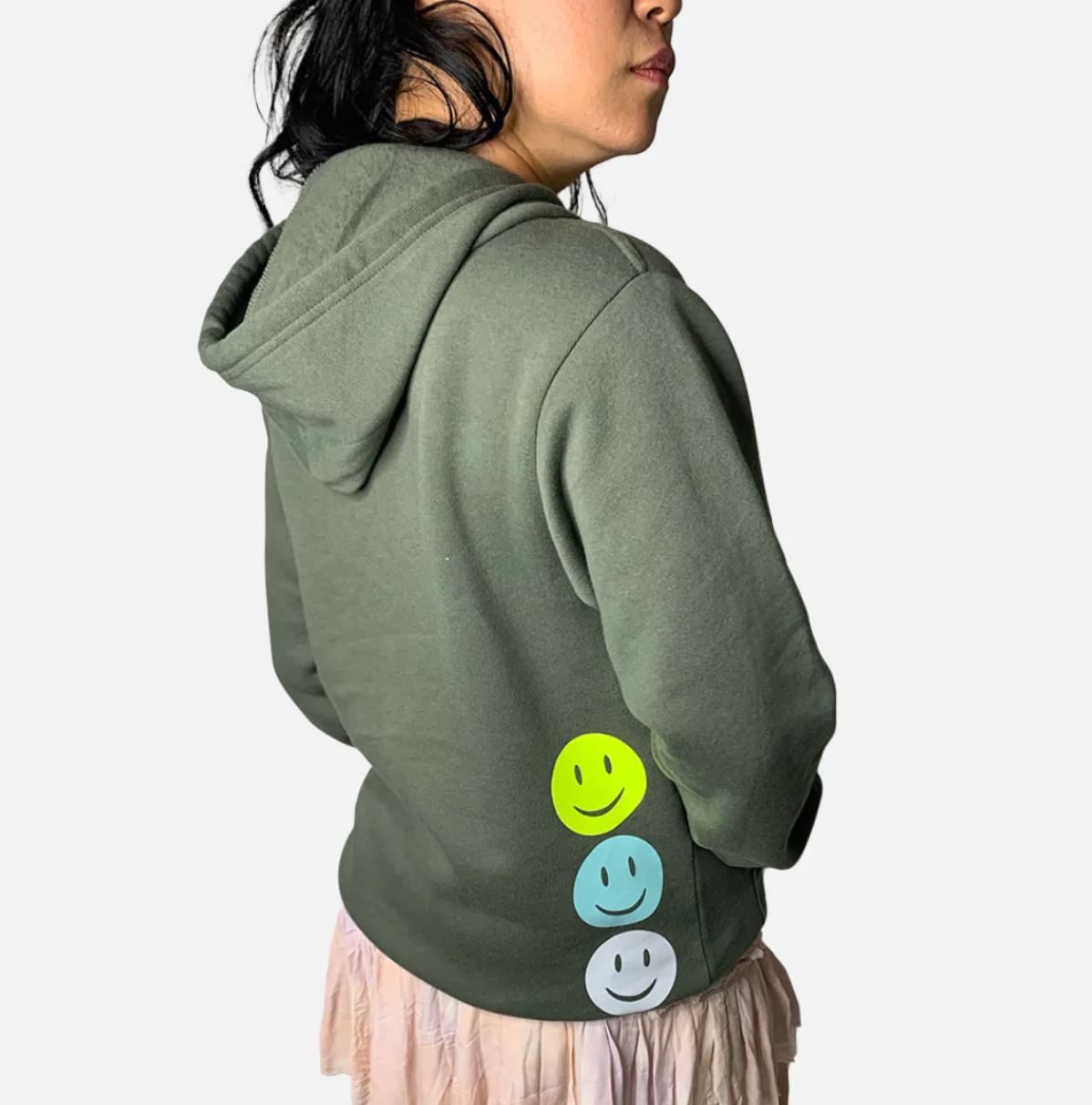 Our Dean Olive Green Hoodie With Neon Smiles is crafted from soft-brushed fleece fabric with a kangaroo pocket neon yellow rubber tipped drawcord. Pair it with biker shorts, leggings or joggers for a timeless and polished day off set.