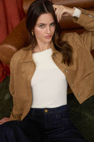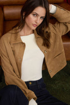 This cropped suede jacket features a classic collared design with long sleeves, convenient pockets, and side slits for effortless movement. Fully lined for added comfort, it’s crafted from a durable blend of 92% polyester and 8% spandex, offering a sleek, solid pattern perfect for versatile outerwear. Available in small, medium, and large sizes. Elevate your wardrobe with this stylish and practical piece.