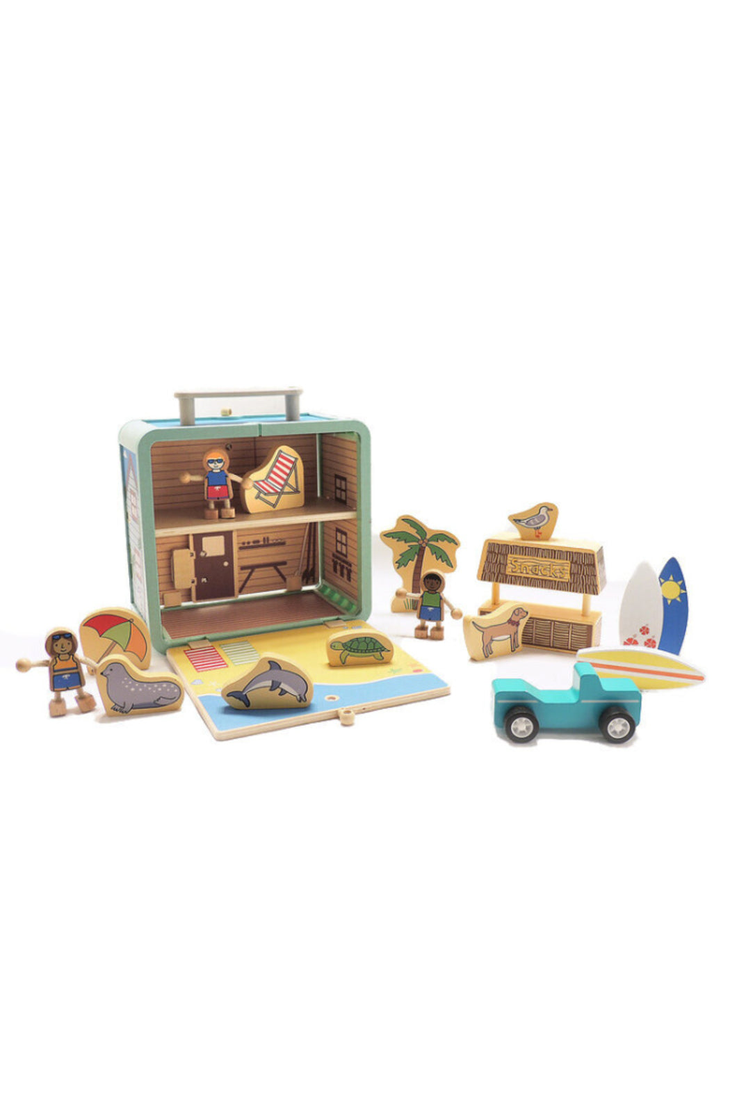 Fairyhouse: The 17-piece Fairy House has everything for whimsical fun on the go, including fairies, a unicorn, bridge, gnome, and more! Bonus: it’s all made of eco-friendly bamboo!