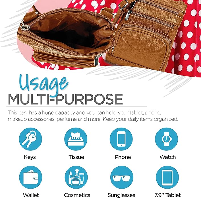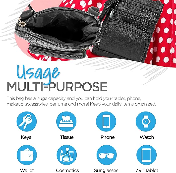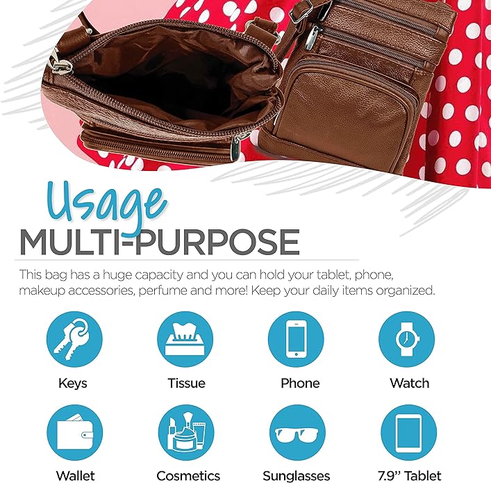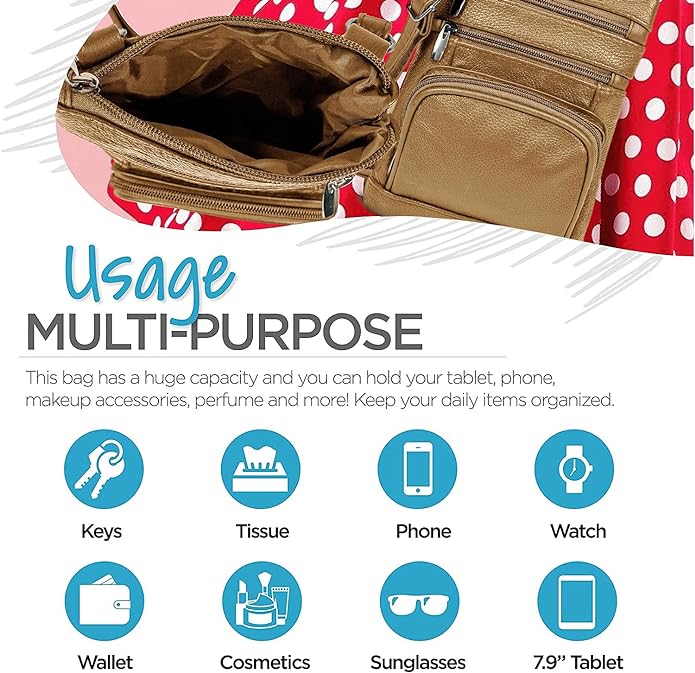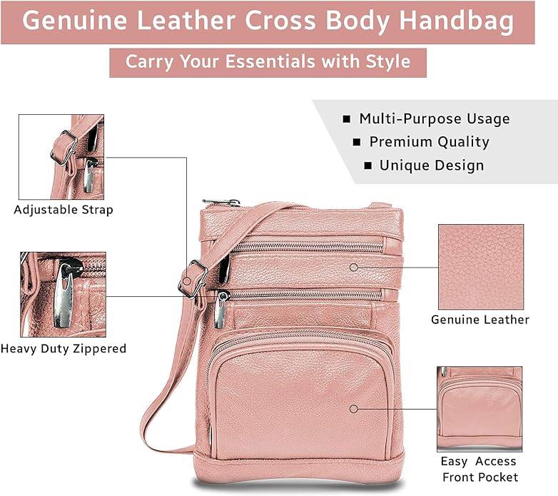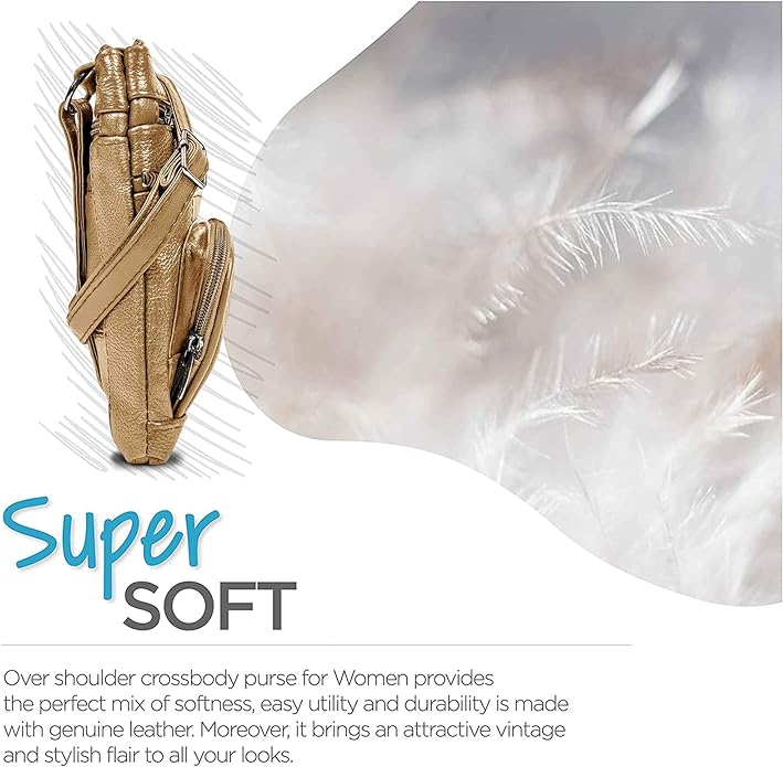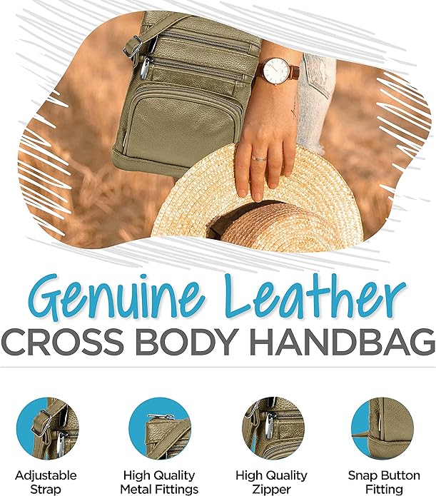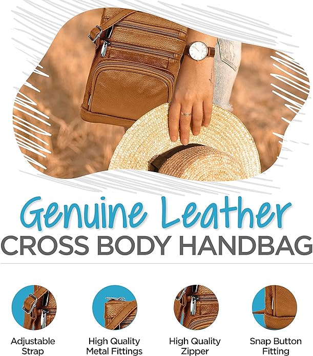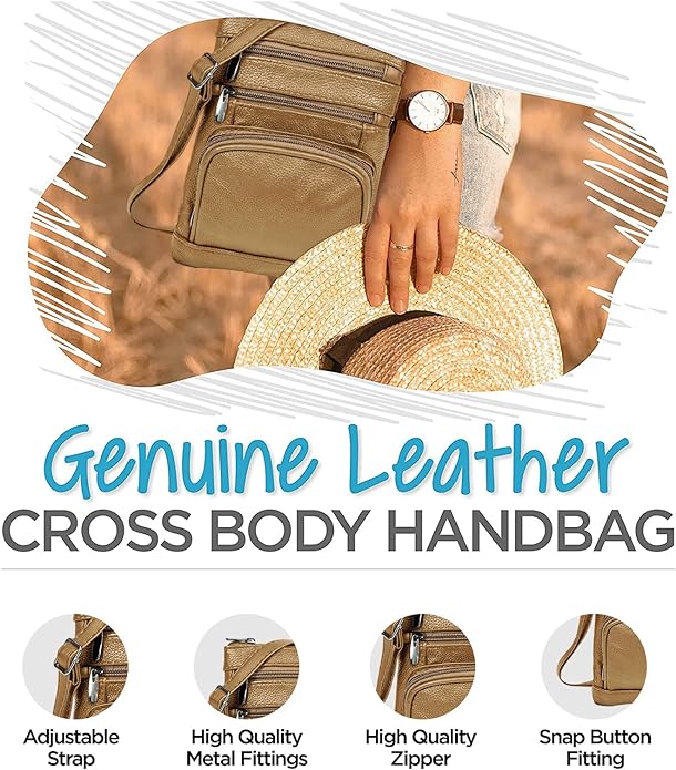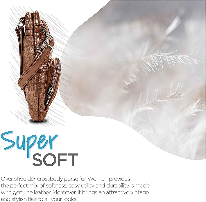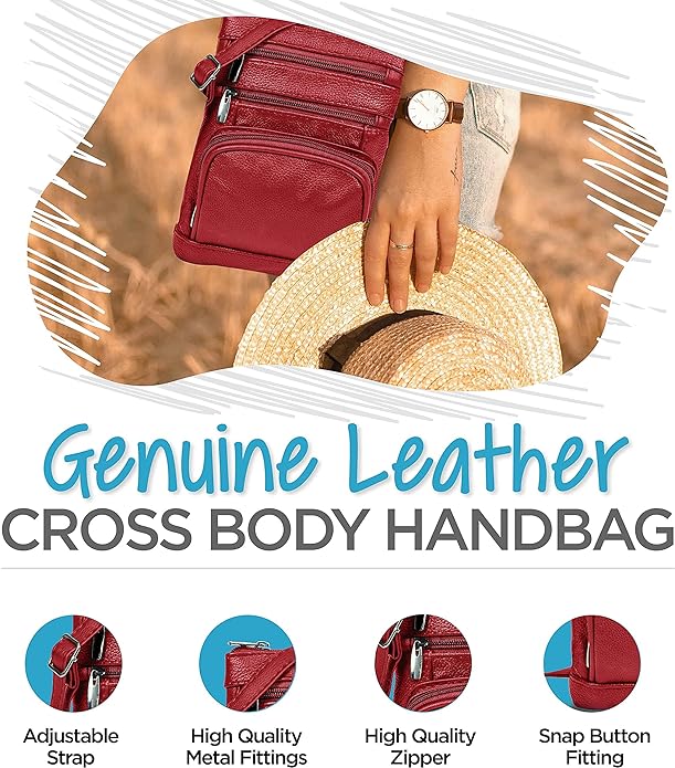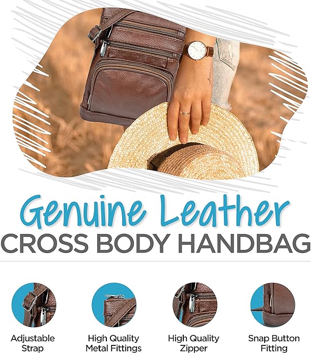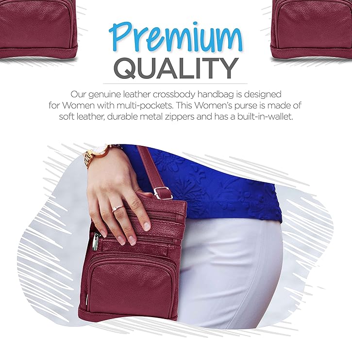 - Cross Body Bag With Premium Quality - Our genuine leather crossbody handbag is designed for women with multi-pockets. This women's purse is made of soft leather, has durable metal zippers, and has a built-in wallet.