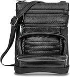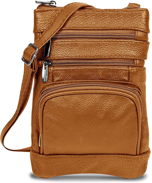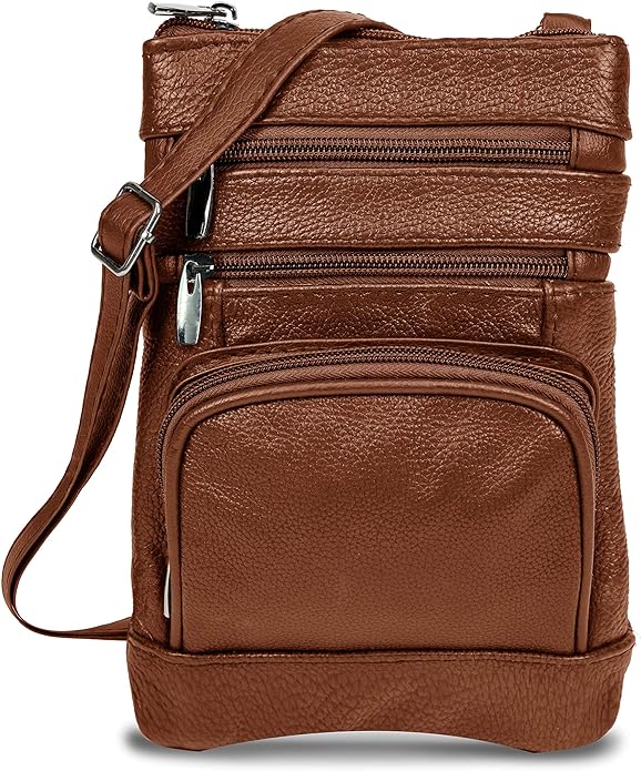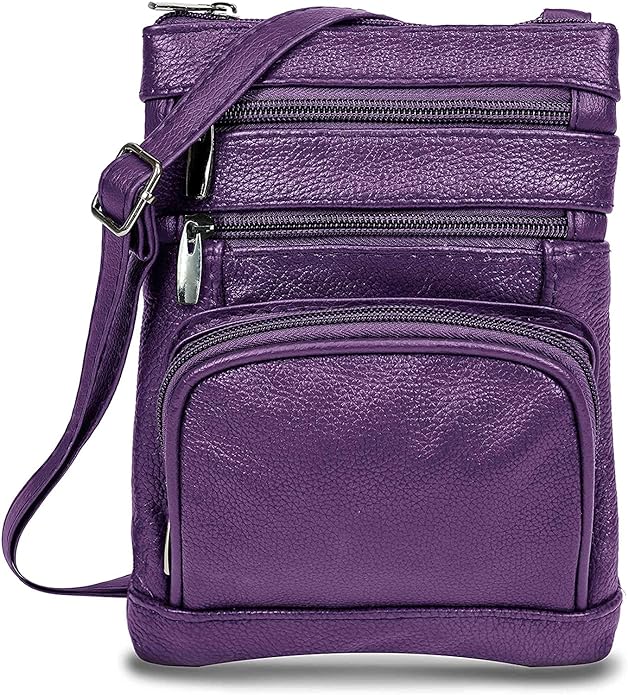 - Cross Body Purse With Unique Design - Our messenger handbag features 5 exterior zip pockets, including a top zippered main pocket, three front zippered pockets, one rear pocket, and a shoulder leather strap. The regular size bag has dimensions: 8.5" (height) x 6.5" (width), plus size: 10.5" (height) x 8" (width), and extra large size: 11.25" (height) x 9.75" (width).Womens Cross Body Purses With Super Soft Material - Over shoulder crossbody purse for women provides the perfect mix of softness, easy utility, and durability and is made with genuine leather. Moreover, it brings an attractive vintage and stylish flair to all your looks.
