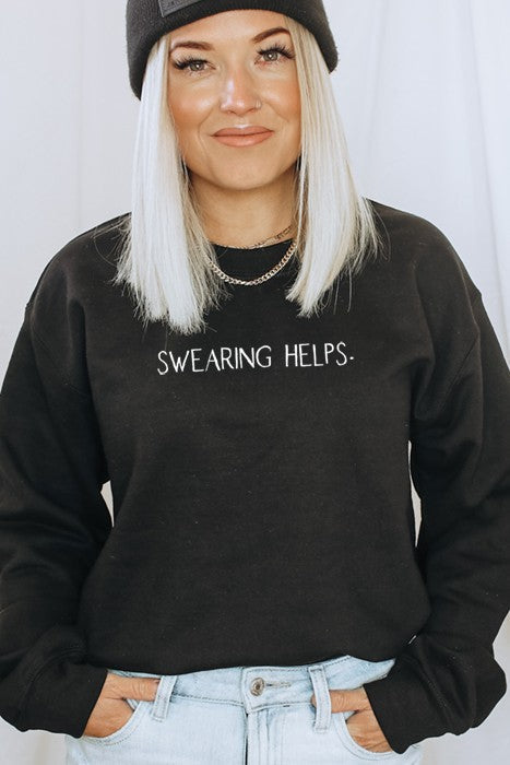 Super soft and cozy graphic sweatshirt. Made of a preshrunk cotton/poly blend. Gildan brand Sweatshirt. Cute stylish design for anytime and anywhere. Swearing always helps!