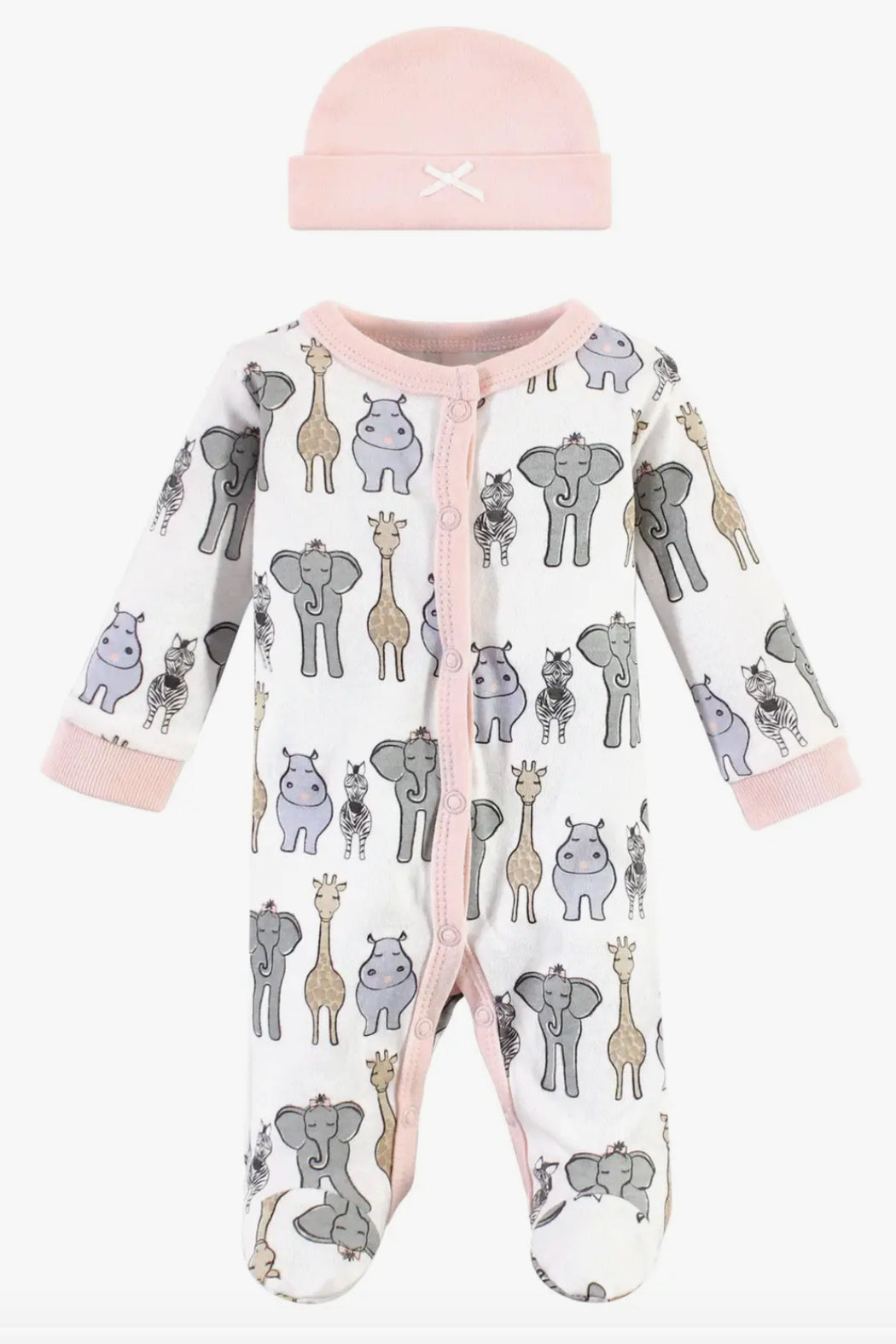 Hudson Baby preemie sleep and play and cap are a great outfit for your tiny loved one. Made of super soft 100% cotton, our preemie clothes feature soft, easy to dress outfits that are gentle on your baby's skin. Our sleep and play and cap make dressing and diapering your little one easier.