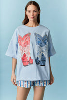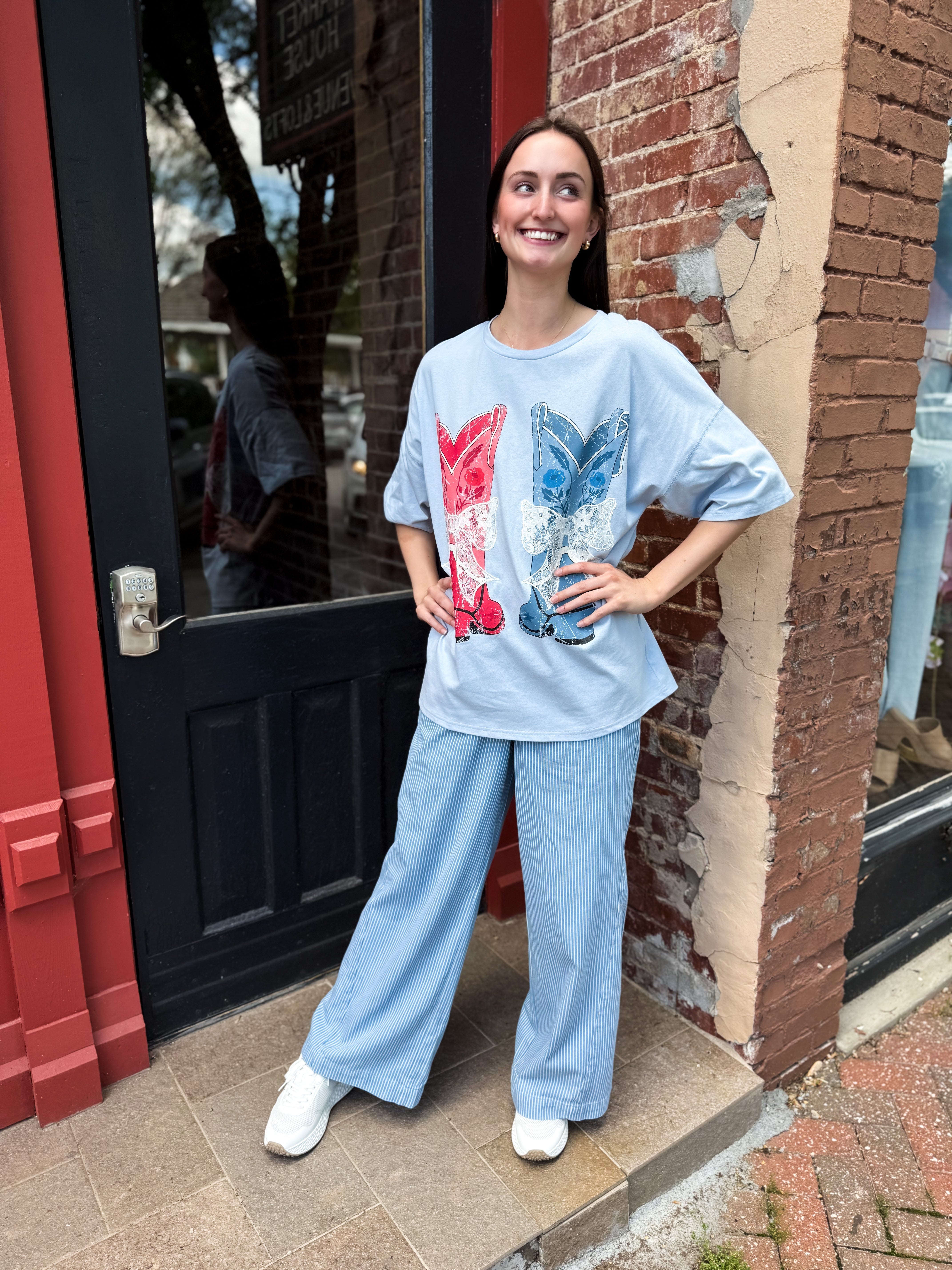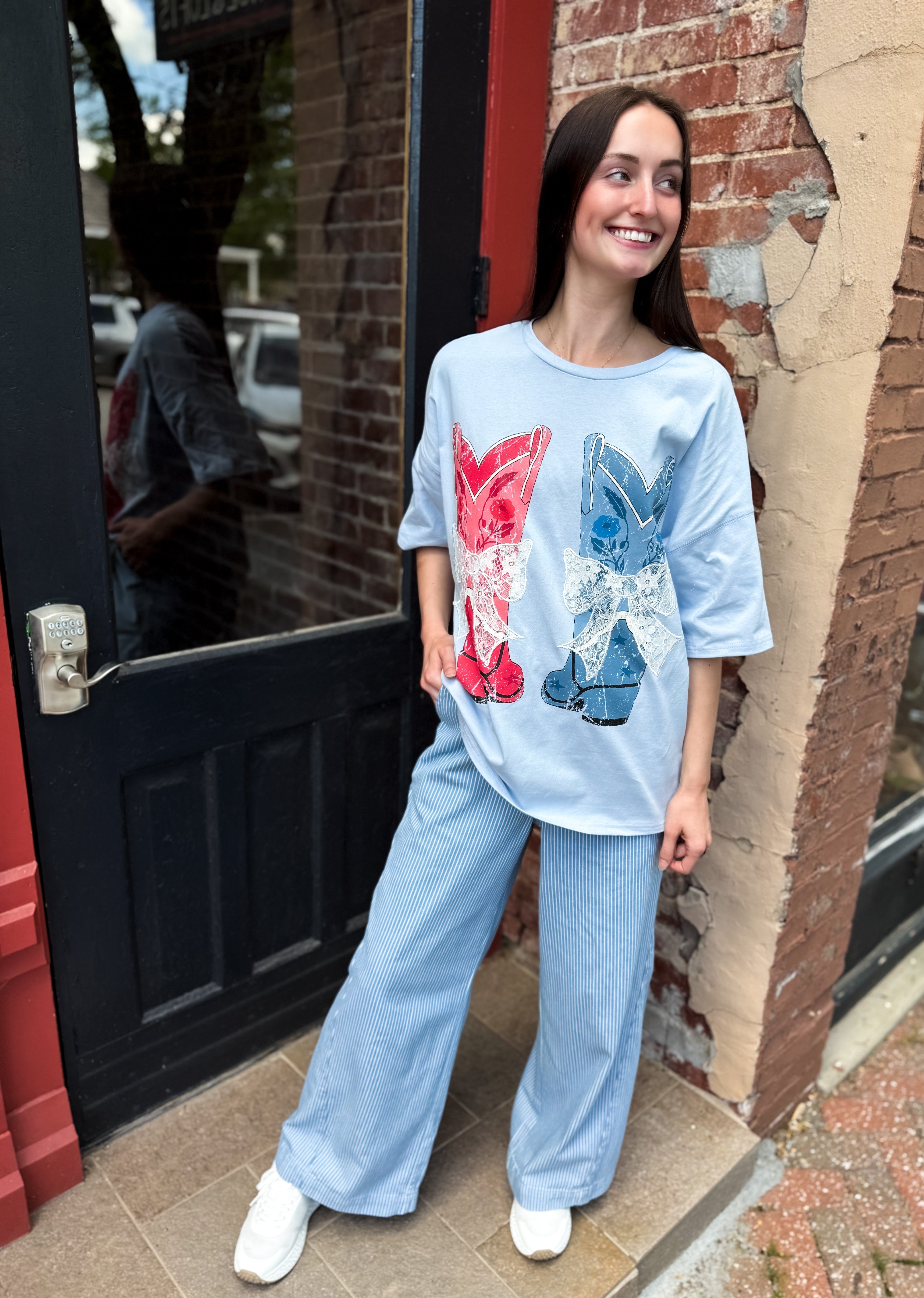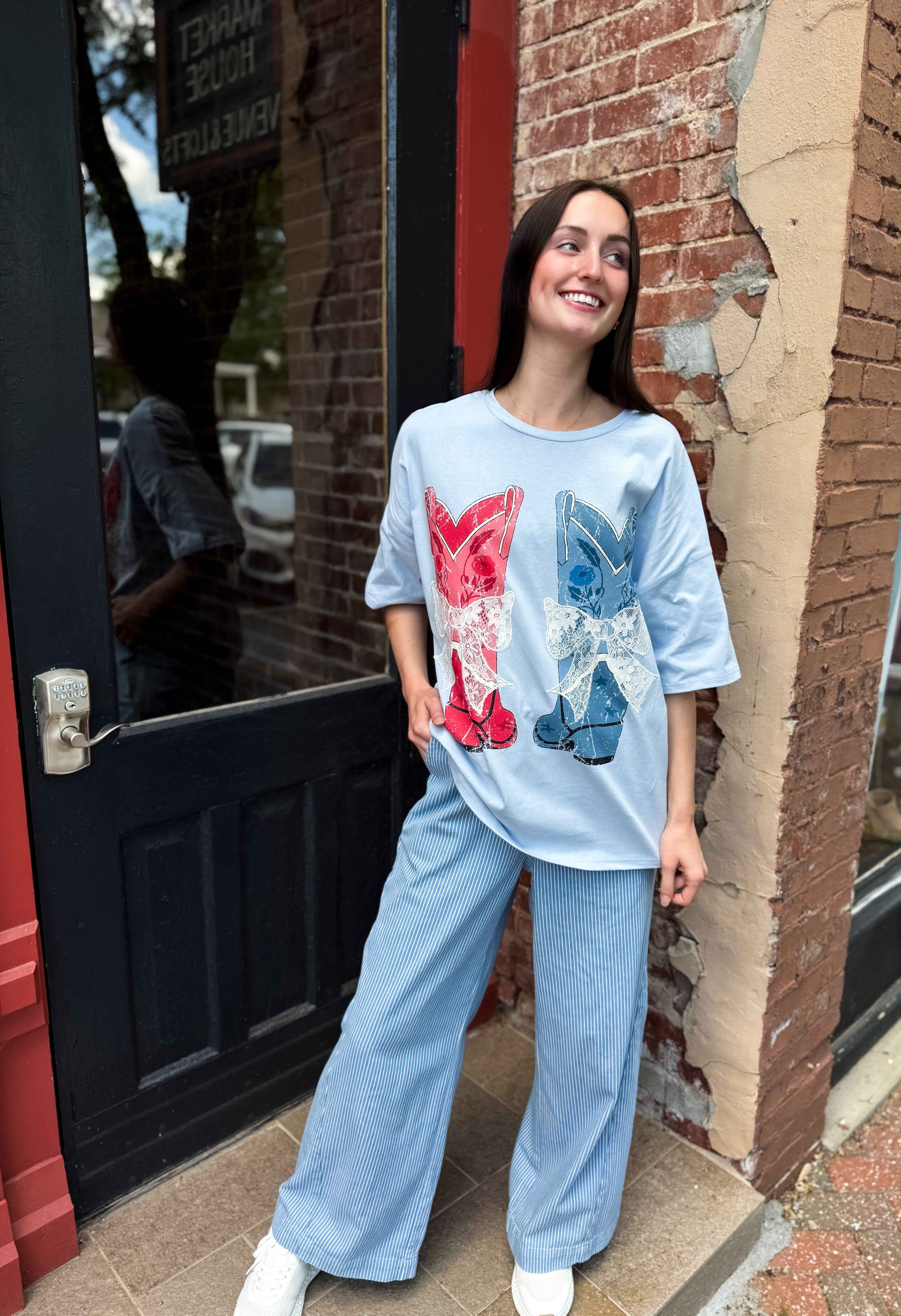 Get ready to wrangle some hearts with our whimsical Sweetheart Rodeo Tee. Featuring a playful graphic print, laser cut lace embroidery, and a trendy bow detail, this t-shirt is sure to lasso in compliments. (Giddy up and grab one now before they're all gone!)