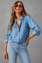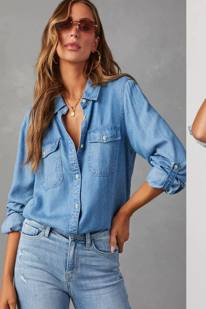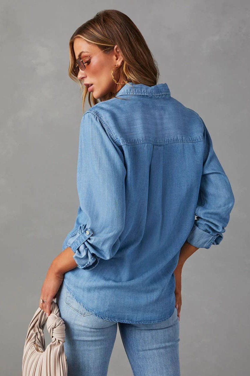Sweetkama Ladies Denim Pockets Long Sleeves Shirt