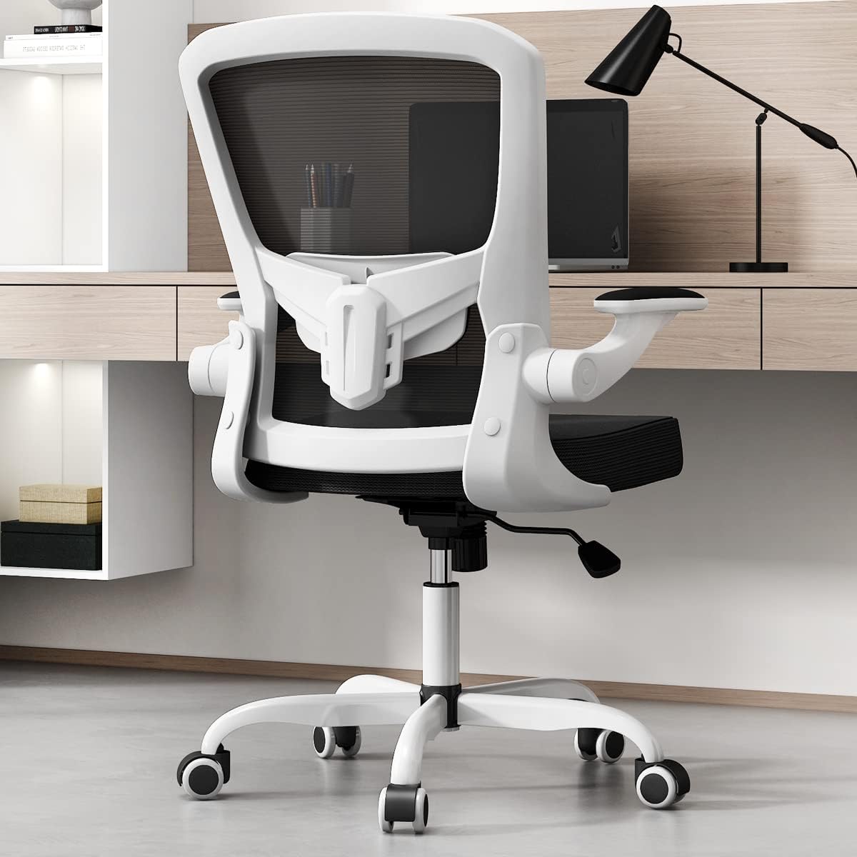 - 【Space Your Saving】The ergonomic office chair comes with 90° adjustable armrests which can be flipped up or down.This ergonomic office chair can fit nicely under the desk and save space; or provide comfort when you feel like to rest your arms.