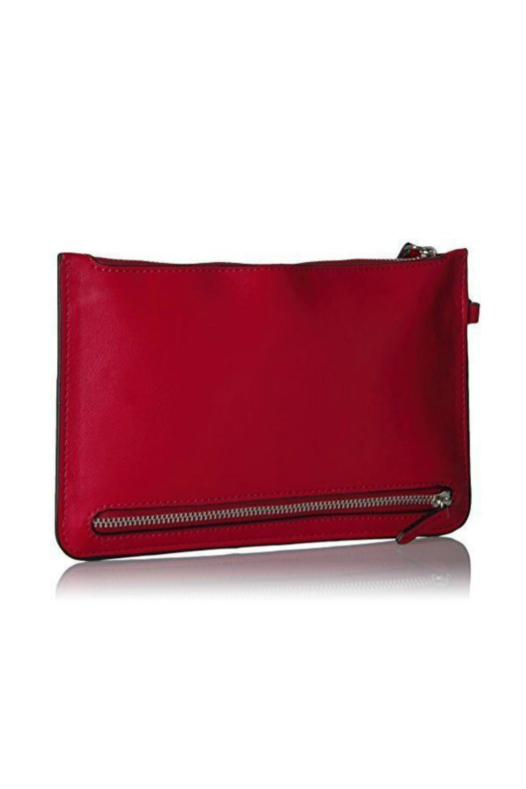 This is the Nine West Table Treasures 3-Compartment Wristlet in RubyRed. It is a trend-right accessory that you will reach for in your closet again and again. Nine West is sure to be your trusted resource for everyday chic style. It's just one little wristlet, but it has three full compartments; one zips from the top, two from the bottom. The wristlet strap is also the zipper pull for the top compartment. Silver tone hardware and front signature emblem. Click "Mimi's Gift Gallery" to find other Nine West bags and accessories. Dimensions: 8 1/2" long x 5 1/2" tall x 1/2" deep with a 6" wrist strap