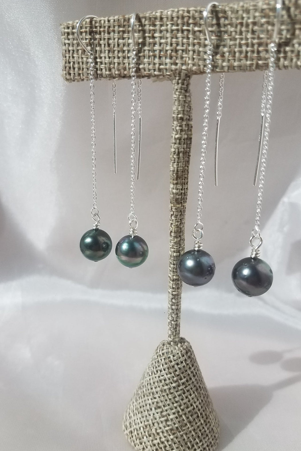 Simple, elegant Tahitian pearl earrings. Can be worn dressed up or casual. Total earring length is 2 1/2 in.