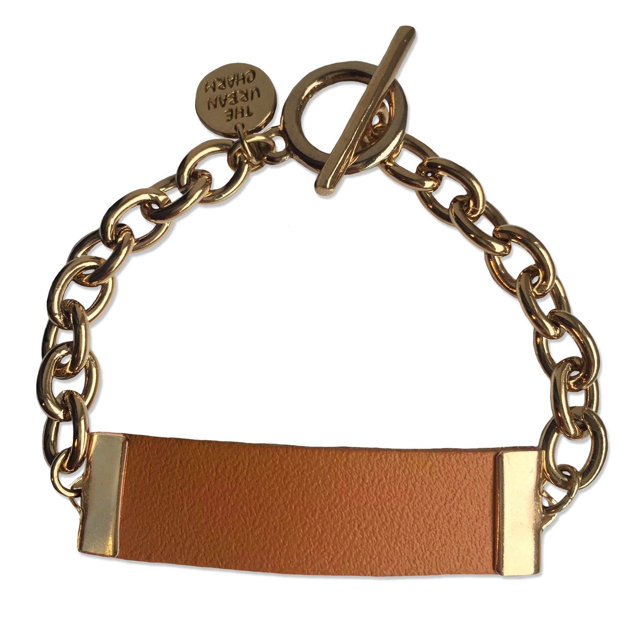 Tan Leather and Chain ID Toggle Bracelet by the Urban Charm