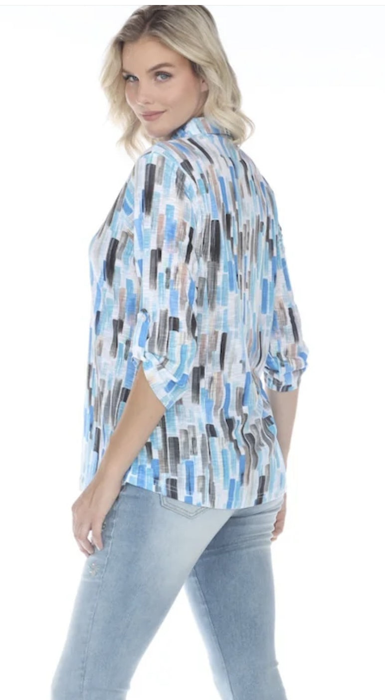 Tango Mango three-quarter sleeve blouse button down front. washable 70% polyester 30% Viscose size extra small to XX large