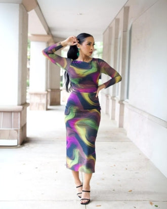 Crafted from a delicate, breathable mesh fabric, the Tanya Mesh Set features a 2-piece design with long sleeves and a skirt. Perfect for a romantic evening out, this set offers both comfort and style in one elegant ensemble.