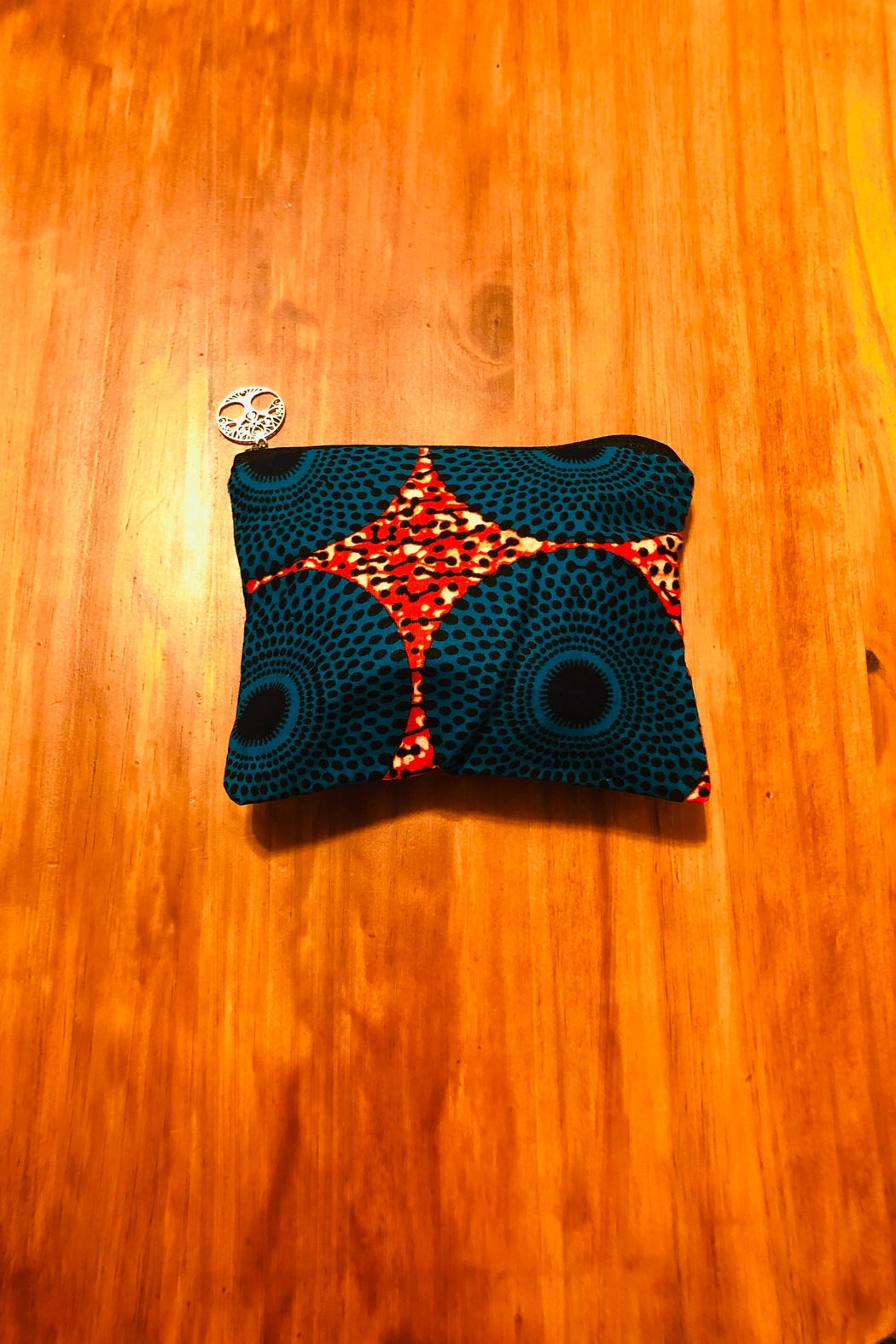 These bags were handmade in Moshi, Tanzania. We purchased them once we descended from Mt. Kilimanjaro and toured the makers' kiosks in the surrounding town. Each bag is unique and mostly made from remnant fabric. Waste not, want not. These bags are big enough to hold cash, lip balm, and a passport. The bags have a durable charmed zipper that will secure the items you place in them. This one has the tree of life charm. Grab whichever one appeals to you today. Measurements: 5" high and 6" wide.