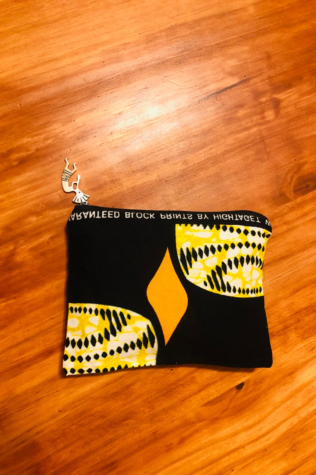 These bags were handmade in Moshi, Tanzania. We purchased them once we descended from Mt. Kilimanjaro and toured the makers' kiosks in the surrounding town. Each bag is unique and mostly made from remnant fabric. Waste not, want not. These bags are big enough to hold cash, lip balm, and a passport. The bags have a durable charmed zipper that will secure the items you place in them. This one has the Kokopelli charm. Grab whichever one appeals to you today. Measurements: 5" high and 6" wide.