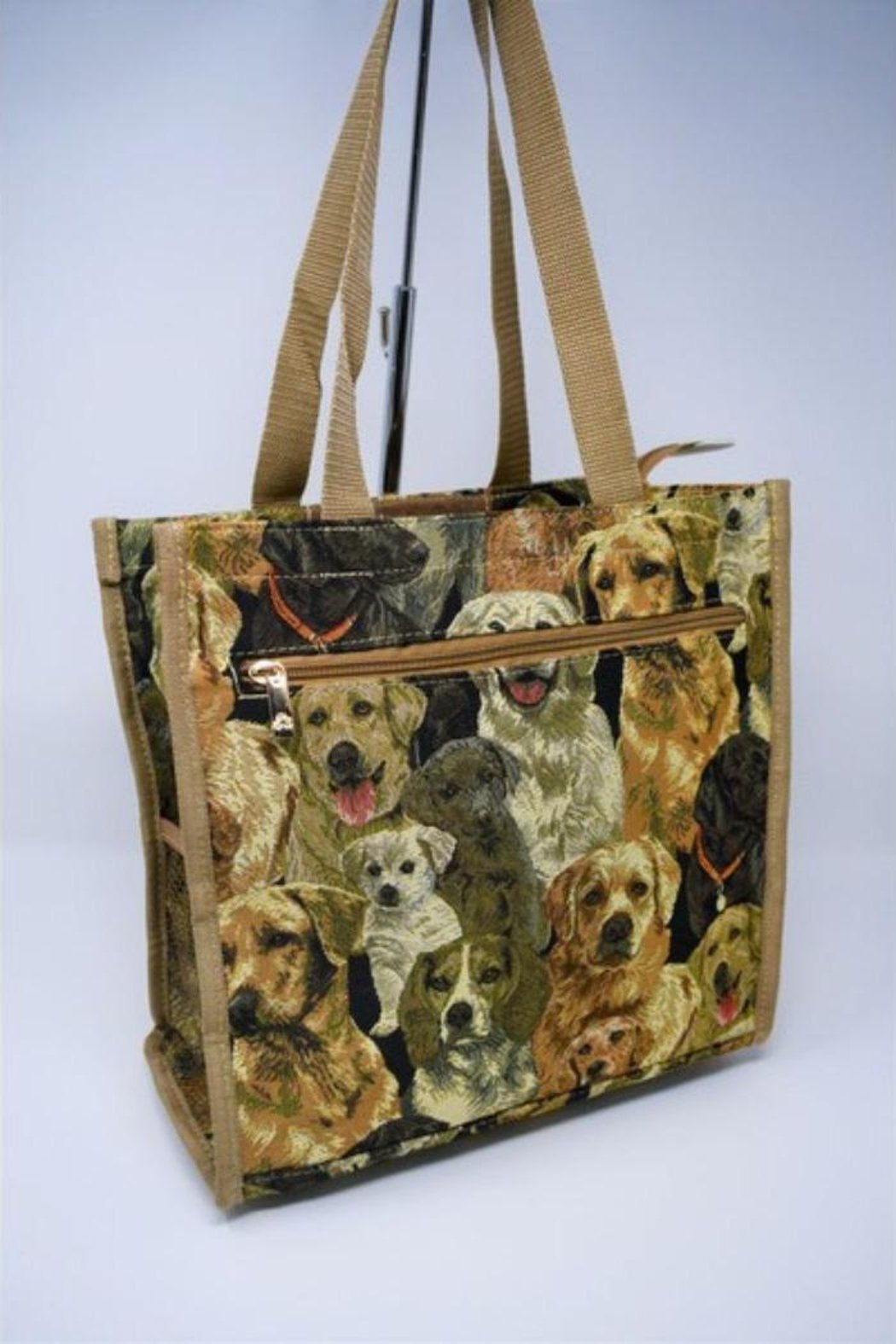 Tapestry Shopper Bag - Puppies And Dogs Print - Light Brown Color – Tote Bag