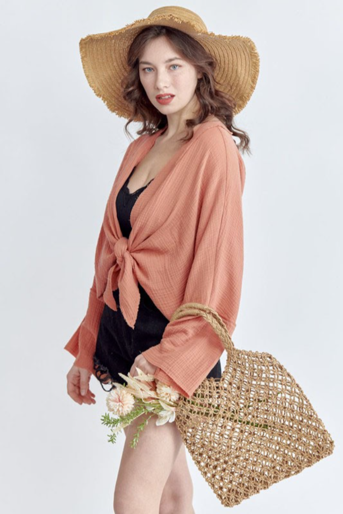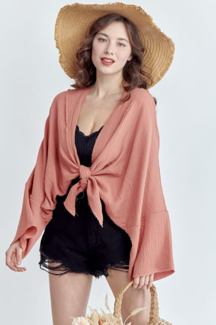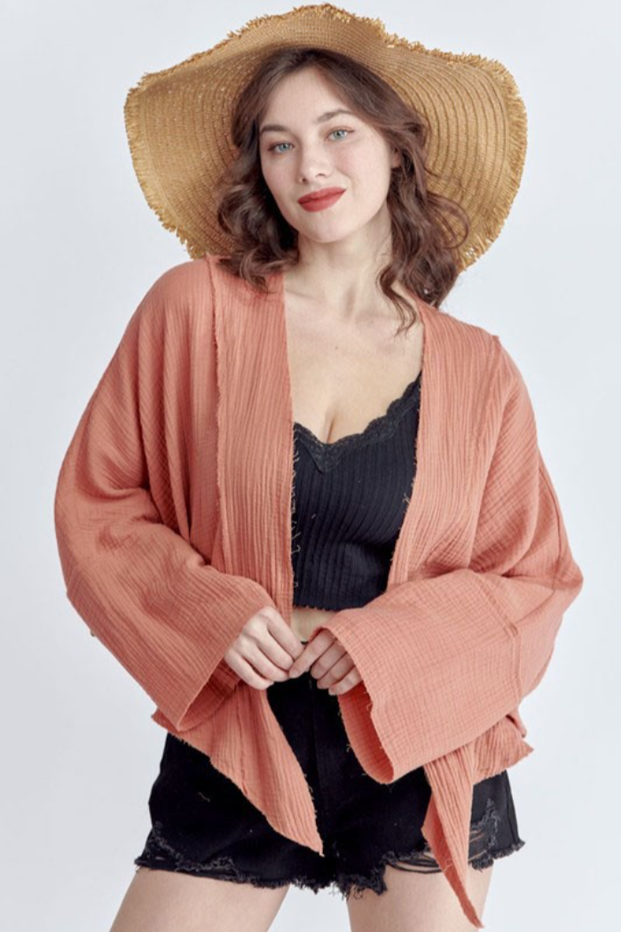 Taylor Plus Size Kimono Tie Top WC6505PL MODEL NOT WEARING PLUS SIZE. SIZE SCALE 1X 14-16 2X 16-18 3X 18-20 Plus size gauze vintage edge detail open front cardigan Fabric100% COTTON