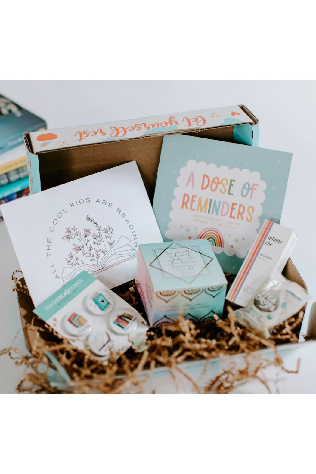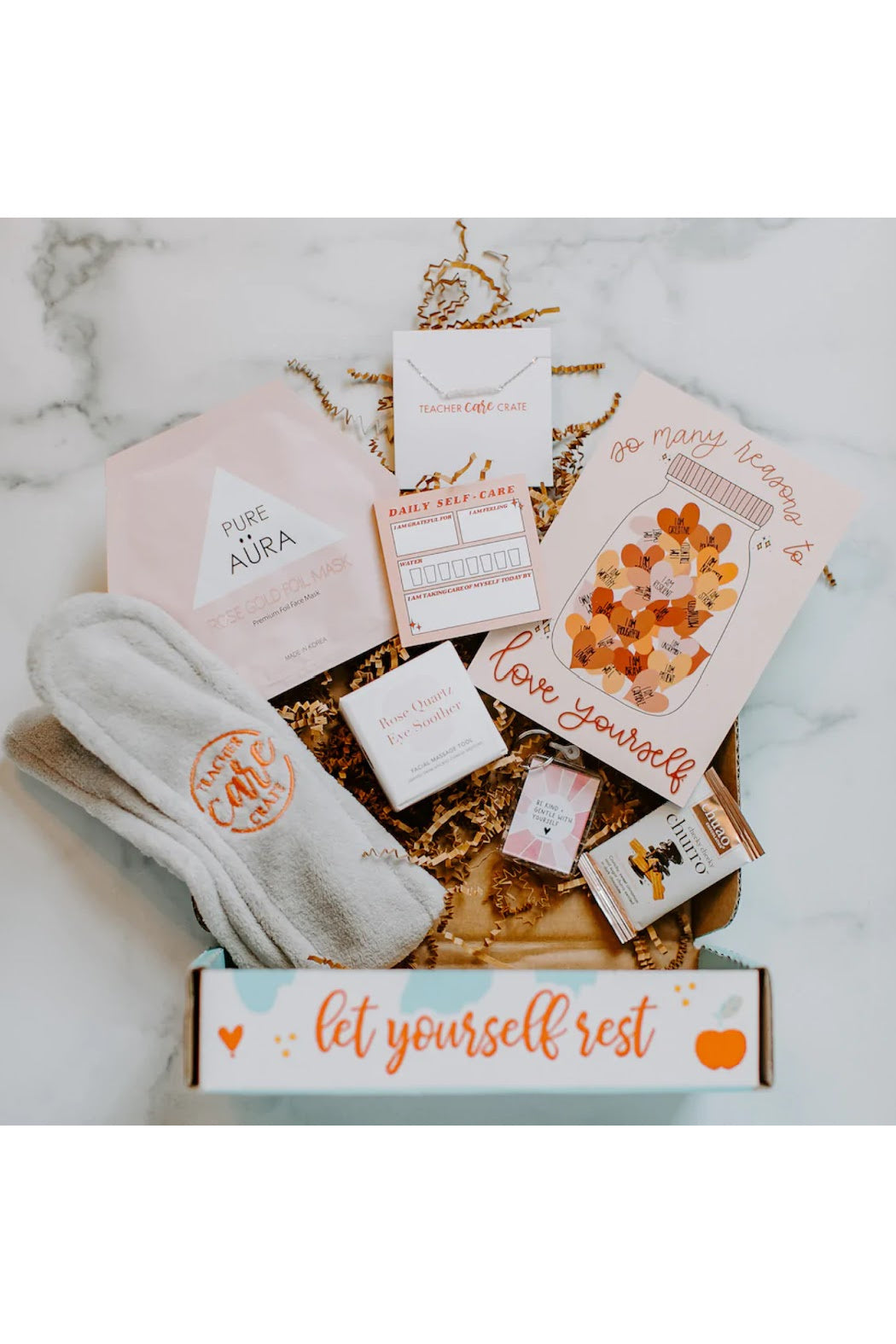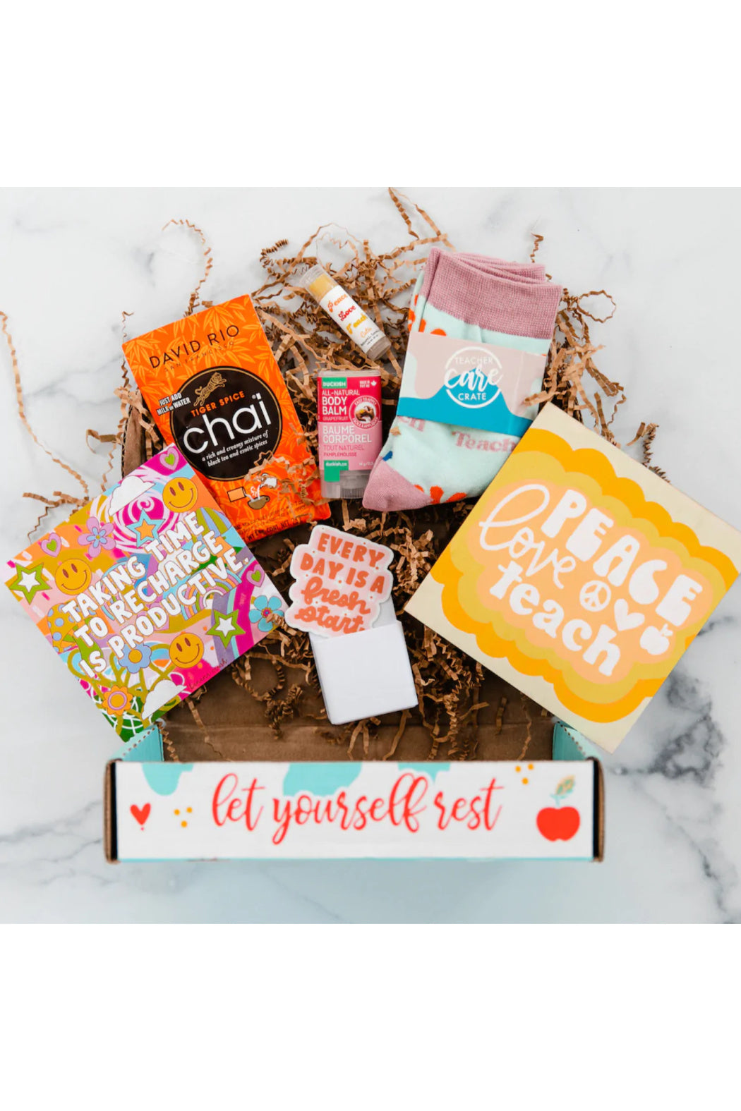 Care packages curated by theme for the teachers that make a difference in our lives, schools, and communities. Each crate contains multiple items that encourage self-care and will brighten up any teacher’s day.